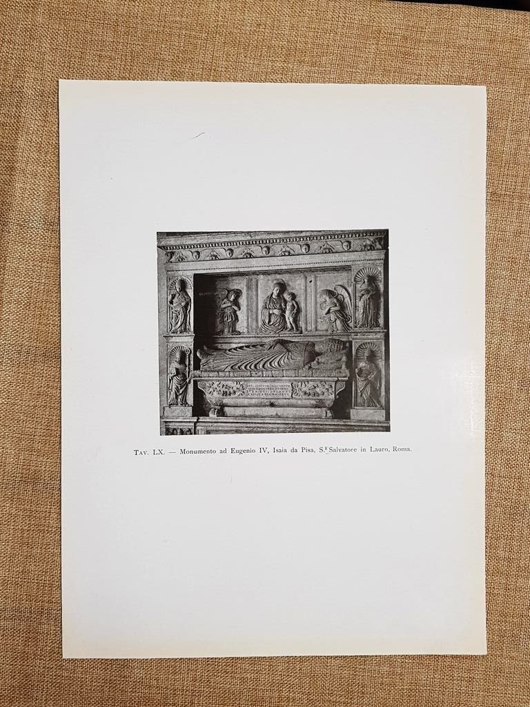 Roma nel 1917 Chiesa del Salvatore in Lauro Monumento a Eugenio IV Isaia da Pisa Rara tavola estratta da pubblicazione del 1917 Stampata su carta non retroscritta Roma nel 1917 Chiesa del Salvatore in Lauro Monumento a Eugenio IV Isaia da Pisa Lazio Dimensioni: Cm 22,00 x 30,00 Codice prodotto: GEO-138