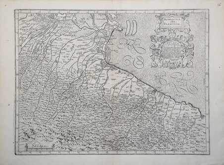 Carta geografica tratta dal ' L’Italia ' a cura di Fabio Magini, edito a Bologna nel 1620, tre anni dopo la prematura morte del padre. Composto da un breve testo descrittivo di sole 24 carte, l’opera è corredata di 61 carte geografiche della penisola, e costituisce il primo esempio di atlante italiano. L’opera è per intero di mano del Magini, che iniziò la realizzazione delle carte nel 1594 circa, dando alla luce per prima nel 1595 la carta del territorio di Bologna. Tutte le carte vennero alle stampe quindi prima del 1620, nelle loro stesure provvisorie, successivamente corrette ed aggiornate per l’edizione definitiva. Per la realizzazione delle lastre il Magini si servì di due dei più famosi intagliatori dell’epoca: il belga Arnoldo Arnoldi e l’inglese Benjamin Wright. Seconda versione della carta della Romagna del Magini, che rimpiazza quella del 1597. Nel cartiglio in alto a destra il titolo ' ROMAGNA olim FLAMINIA ' e la dedica ' All’Ill.mo et R.mo S.or mio p[ad]rone col.mo il S.or Card.le Sforza. ' Non mi essendo riuscito il disegno della Romagna, che gia diedi fuori, l’ho di nuovo riformato et continuatolo meglio con li stati confinanti, accrescendolo anco di molti luoghi il quale come nuovo lo dedico & consacro a V.S. Ill.ma come à quella che ha havuta cosi segnalata legatione quando lo strenuo suo valore estirpò da quella tanto banditi, che infestavano tutto quasi lo stato ecclesiastico, V.S. Ill.ma si degni di ricevere questo picolo segno dell’osservanza et obligo mio ch’io le bascio humilmente le mani, Di Bologna li 11 Dece[m]bre 1598. D.V.S. Ill.ma et R.ma Divotiss.o Ser.re GM. ' (Giovanni Magini). In basso a sinistra la scala grafica ' Scala di Miglia dieci ' (10 miglia pari a mm 60). ' Orientazione nei quattro lati al centro con il nome dei punti cardinali ' Septentrio, Meridies, Oriens, Occidens, ' il nord in alto. Graduazione ai margini di 1’ in 1’ da 43° 31’ 30’’ a 44° 22’ di latitudine, e da 34° 13’ 40’’ a 35° 51’ di longitudine. ' Incisione in rame, in ottimo stato di conservazione. Bibliografia Almagià (1922): pp. 56-59, n. 15; ' Almagià (1960): pp. 22-23, tav. XXXVIII; Faini-Majoli (1997): pp. 22-23, n. 3. Map taken from ' L'Italia ' edited by Fabio Magini, published in Bologna in 1620, three years after the untimely death of his father. Composed of a short descriptive text of only 24 pages, the work is accompanied by 61 maps of the peninsula, and is the first example of an Italian atlas. The work is entirely by the hand of Giovanni Antonio Magini, who began the realization of the maps in 1594 or so; the first dated map (1595) the map of the territory of Bologna. All the maps were printed before 1620, in their provisional drafts, later corrected and updated for the final edition. For the realization of the plates Magini used two of the most famous engravers of the time: the Belgian Arnoldo Arnoldi and the English Benjamin Wright. Copperplate, in good condition. Seconda versione della carta della Romagna del Magini, che rimpiazza quella del 1597. Nel cartiglio in alto a destra il titolo ' ROMAGNA olim FLAMINIA ' e la dedica ' All’Ill.mo et R.mo S.or mio p[ad]rone col.mo il S.or Card.le Sforza. ' Non mi essendo riuscito il disegno della Romagna, che gia diedi fuori, l’ho di nuovo riformato et continuatolo meglio con li stati confinanti, accrescendolo anco di molti luoghi il quale come nuovo lo dedico & consacro a V.S. Ill.ma come à quella che ha havuta cosi segnalata legatione quando lo strenuo suo valore estirpò da quella tanto banditi, che infestavano tutto quasi lo stato ecclesiastico, V.S. Ill.ma si degni di ricevere questo picolo segno dell’osservanza et obligo mio ch’io le bascio humilmente le mani, Di Bologna li 11 Dece[m]bre 1598. D.V.S. Ill.ma et R.ma Divotiss.o Ser.re GM. ' (Giovanni Magini). In basso a sinistra la scala grafica ' Scala di Miglia dieci ' (10 miglia pari a mm 60). ' Orientazione nei quattro lati al centro con il nome dei punti cardinali ' Septentrio, Meridies, Oriens, Occidens, ' il nord in alto. Graduazione ai margini di 1’ in 1’ da 43° 31’ 30’’ a 44° 22’ di latitudine, e da 34° 13’ 40’’ a 35° 51’ di longitudine. ' Incisione in rame, in ottimo stato di conservazione. Bibliografia Almagià (1922): pp. 56-59, n. 15; ' Almagià (1960): pp. 22-23, tav. XXXVIII; Faini-Majoli (1997): pp. 22-23, n. 3. Cfr.
