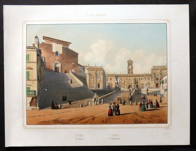 Dessiné d'apres nature et lith. par Ph. Benoist, Imp. par Lemercier, Paris, 1845 circa. Litografia in colore d'epoca, cm 27,5 x 36 (il foglio). Appena rifilato il margine inferiore, splendida la coloritura.