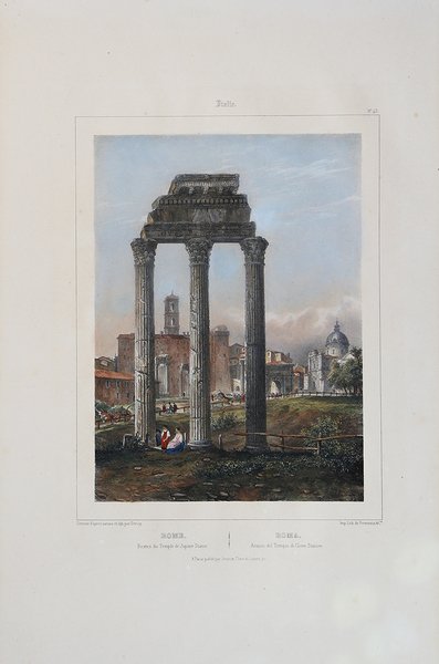 Tavola tratta dalla serie di vedute dal titolo "L'Italie, collection des sites les plus renommés et des Monumens les plus remarquables de ce pays".Disegnata e litografata da Isidor L. Deroy per l'editore Jeannin di Parigi.Litografia, finemente colorata a mano, in ottimo stato di conservazione. View taken from "L'Italie, collection des sites les plus renommés et des Monumens les plus remarquables de ce pays".Designed and lithographed by Deroy for the publisher Jeannin of Paris.Litograph with fine hand colouring, excellent condition. Cfr.