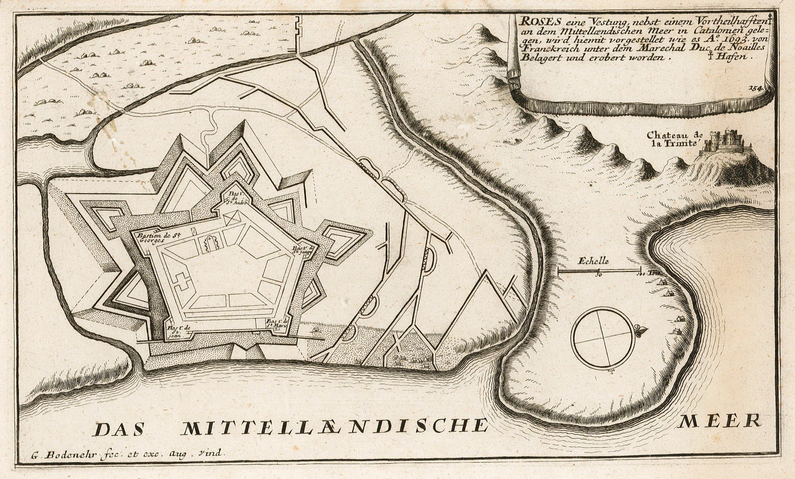 Roses eine Vestung, nebst einem Vortheilhafsten an dem Mittellaendischen meer in Catalonien .