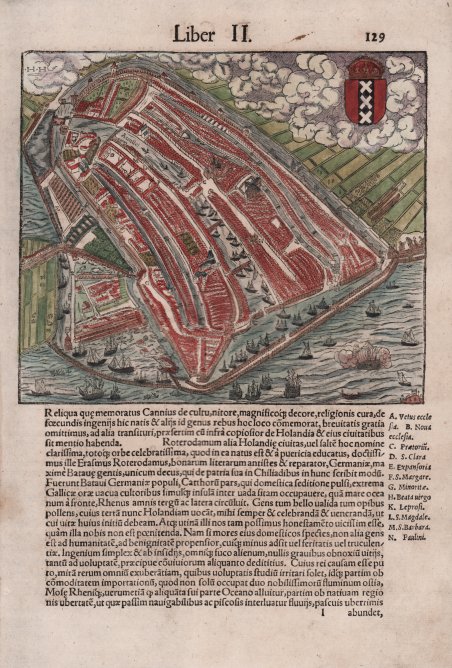 Tavola tratta dalla ' Cosmographiae Universalis, edizione in latino, Basilea, seconda metà del XVI secolo.La ' Cosmographiae Universalis ' di Sebastian Münster (1488-1552), stampata per la prima volta Basilea nel 1544 dall’editore Heinrich Petri, venne più volte aggiornata e aumentata di nuove carte geografiche e rappresentazioni urbane nelle sue numerose edizioni che arrivano all’inizio del secolo successivo. Münster aveva lavorato a raccogliere informazioni al fine di ottenere un'opera che non deludesse le aspettative e, dopo un'ulteriore pubblicazione in tedesco abbellita da 910 stampe su legno, giunse nel 1550 all'edizione definitiva in latino, illustrata da 970 silografie. Vi furono poi numerose edizioni in diverse lingue, fra cui latino, francese, italiano, inglese e ceco. Dopo la sua morte di Münster (1552), Heinrich Petri prima, e il figlio Sebastian poi, continuarono la pubblicazione dell’opera. La ' Cosmographia universalis ' fu uno dei libri più popolari e di successo del XVI secolo, e vide ben 24 edizioni in 100 anni: l'ultima edizione tedesca venne pubblicata nel 1628, molto tempo dopo la morte dell'autore. La ' Cosmographia ' conteneva non solo le ultime mappe e vedute di tutte le città più famose, ma anche una serie di notizie enciclopediche di dettagli relative al mondo conosciuto, e sconosciuto. Il particolare successo anche commerciale di quest'opera fu dovuto in parte alle belle incisioni (tra i cui autori si possono citate Hans Holbein il Giovane, Urs Graf, Hans Rudolph Manuel Deutsch, David Kandel). Silografia, finemente colorata a mano, in ottime condizioni. Plate taken from the ' Cosmographiae Universalis, Latin edition, Basel, half of the 16th Century. The ' Cosmographiae Universalis ' of Sebastian Münster (1488-1552), printed for the first time in Basel in 1544 by the publisher Heinrich Petri, was updated several times and increased with new maps and urban representations in its many editions until the beginning of the next century. Münster had worked to collect information in order to obtain a work that did not disappoint expectations and, after a further publication in German embellished with 910 woodblock prints, arrived in 1550 to the final edition in Latin, illustrated by 970 woodcuts. There were then numerous editions in different languages, including Latin, French, Italian, English and Czech. After his death in Münster (1552), Heinrich Petri first, and then his son Sebastian, continued the publication of the work. The ' Cosmographia universalis ' was one of the most popular and successful books of the 16th century, and saw as many as 24 editions in 100 years: the last German edition was published in 1628, long after the author's death. The ' Cosmographia ' contained not only the latest maps and views of all the most famous cities, but also a series of encyclopedic details related to the known, and unknown, world. The particular commercial success of this work was due in part to the beautiful engravings (among whose authors can be mentioned Hans Holbein the Younger, Urs Graf, Hans Rudolph Manuel Deutsch, David Kandel). Woodcut with finel later hand colour, ' in good condition. Cfr.