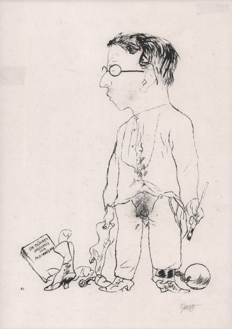 Litografia originale di George Grosz, tavola 42 dell’Ecce Homo. La prima, grande raccolta di opere dell'artista George Grosz, pubblicazione che valse a lui e ai suoi editori un processo per aver pubblicato immagini oscene, a seguito della quale parte delle tavole venne confiscata. Da un'edizione di 40 esemplari, firmata a matita da George Grosz in basso a destra. ' Una bella impressione, stampata su carta coeva, qualche ossidazione, altrimenti in ottime condizioni. "Ecce Homo", pubblicato dal Malik Verlag in cinque diverse edizioni nel periodo 1922/1923, è un compendio selezionato di disegni di Grosz dal 1915 al 1922: critico del loro tempo e della società, graffiante e satirico. La grande edizione totale degli acquerelli e dei disegni (10 000 copie) replicati in un processo di riproduzione meticoloso doveva garantire la loro distribuzione di massa. Come sottolinea Alexander Dückers, l'opera disegnata di George Grosz è difficilmente separabile dalla sua opera stampata, ed è assolutamente caratteristico che, dopo il 1918, in linea con il suo concetto "undogmatico", l'artista abbia pubblicato "quasi esclusivamente fotolitografie e stampe offset dopo i disegni, cioè riproduzioni grafiche." (A. Dückers). ' L'artista e gli editori Julian Gumperz e Wieland Herzfelde furono processati nel 1923/1924 perché "Ecce Homo" conteneva numerosi fogli che offendevano "il senso di vergogna e decenza di una persona con normali percezioni in materia di sessualità" - come si legge nelle accuse. "Tuttavia, il tribunale non ha acconsentito alla richiesta dell'accusa di confiscare e distruggere l'intero portfolio di "Ecce Homo". Ha stabilito solo che 17 degli 84 disegni e cinque delle 16 riproduzioni di acquerelli dovevano essere rimossi dall'opera". George Grosz, nome d'arte di Georg Ehrenfried Groß (Berlino, 26 luglio 1893 - Berlino, 6 luglio 1959), è stato un pittore tedesco. Tra il 1909 e il 1911 studiò all'Accademia di Dresda, con l'intenzione di comprendere a fondo le tecniche di rappresentazione degli autori classici. Realizzò copie di opere degli antichi maestri, soprattutto Rubens, esposte nella pinacoteca di Dresda; in questo periodo eseguì anche disegni per giornali e riviste satiriche, utilizzando lo strumento della caricatura. Nel 1913 soggiornò a Parigi, dove entrò in contatto con le avanguardie del cubismo e del futurismo e dove poté ammirare le opere di Francisco Goya, Honoré Daumier e Henri de Toulouse-Lautrec. Fu in questi anni che il suo stile subì un processo di progressiva semplificazione delle forme, sotto l'influenza dell'espressionismo, del cubismo e del futurismo, diffuso tra i giovani artisti dell'epoca. Bibliografia A. Dückers, ' George Grosz, das druckgraphische Werk ' p.72-85; Wieland Herzfelde (introduction), ' Der Malik-Verlag, 1916-1947, ' exhib. cat. Deutsche Akademie der Künste Berlin, Berlin (Ost) 1966, cat. no. 59; Lothar Lang, George-Grosz-Bibliographie, in: Marginalien, Zeitschrfit für Buchkunst und Bibliophilie, 30th issue, July 1968, p. 1 ff, no. 38; Rosamunde Neugebauer, Georges Grosz, Macht und Ohnmacht satirischer Kunst. Die Graphikfolgen "Gott mit uns", Ecce Homo und Hintergrund, Berlin 1993, p. 81 ff. Original lithograph by George Grosz, plate 42 from ' Ecce Homo. ' From an edition of 40, signed in pencil by George Grosz. At lower right. A fine impression, printed on contemporary wove paper, some foxing, otherwise very good condition. ' “Ecce Homo”, published by the Malik Verlag in five different editions during the weeks of the turn of year 1922/1923, is a selected compendium of drawings by Grosz from 1915 to 1922: critical of their time and society, biting and satirical. The large total edition of the watercolours and drawings (10 000 copies) replicated in a meticulous reproduction process was meant to guarantee their mass distribution. As Alexander Dückers emphasises, George Grosz's drawn work is hardly to be divided from his printed work, and it is downright characteristic that, after 1918, in keeping with his “undogmatic” concept, the artist published “almost exclusively photolithographs and offset prints after drawings, that is, graphic reproductions” (A. Dückers). The artist and the publishers Julian Gumperz and Wieland Herzfelde were put on trial in 1923/1924 because “Ecce Homo” contained numerous sheets that offended “the sense of shame and decency of a person with normal perceptions in regard to sexuality” - as stated in the charges. “However, the court did not consent to the prosecution's claim that the entire 'Ecce Homo' portfolio be confiscated and destroyed. It determined only that 17 of the 84 drawings and five of the 16 reproductions of watercolours were to be removed from the work.” George Grosz, stage name of Georg Ehrenfried Groß (Berlin, July 26, 1893 - Berlin, July 6, 1959), was a German painter. Between 1909 and 1911 he studied at the Academy of Dresden, with the intention of fully understanding the techniques of representation of classical authors. He made copies of works by the old masters, especially Rubens, exhibited in the Dresden picture gallery, in this period also performed drawings for newspapers and satirical magazines, using the tool of caricature. In 1913 he stayed in Paris, where he came into contact with the avant-garde of Cubism and Futurism and where he could admire the works of Francisco Goya, Honoré Daumier and Henri de Toulouse-Lautrec. It was in these years that his style underwent a process of progressive simplification of forms, under the influence of expressionism, cubism and futurism, widespread among the young artists of the time. Literature A. Dückers, ' George Grosz, das druckgraphische Werk ' p.72-85; Wieland Herzfelde (introduction), ' Der Malik-Verlag, 1916-1947, ' exhib. cat. Deutsche Akademie der Künste Berlin, Berlin (Ost) 1966, cat. no. 59; Lothar Lang, George-Grosz-Bibliographie, in: Marginalien, Zeitschrfit für Buchkunst und Bibliophilie, 30th issue, July 
