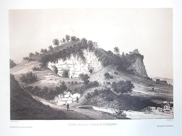 RUINES DE CHIUSI (TOMBEAUX ETRUSQUES). Riproduzione tratta dall'album "La Toscane" di André Durand.