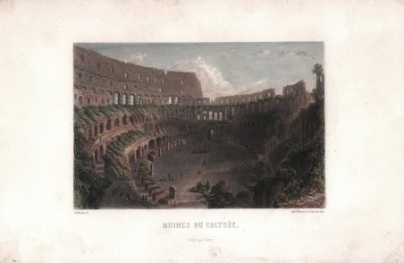 Veduta tratta dall’opera di Mary-Lafon, ' Rome ancienne et moderne depuis sa fondation jusqùa nos jours, stampata a Parigi nel 1852 dall’editore Fourne. Jean Bernard Mary-Lafon (1810-1884) letterato, storico, linguista e drammaturgo francese, parte della cui opera è dedicata all'occitano e alla letteratura occitana. Per la sua opera su Roma si avvalse delle illustrazioni incise dai più valenti artisti francesi del periodo. Acquaforte, finemente colorata a mano, in ottimo stato di conservazione. Veduta tratta dall’opera di Mary-Lafon, ' Rome ancienne et moderne depuis sa fondation jusqùa nos jours, stampata a Parigi nel 1852 dall’editore Fourne. Jean Bernard Mary-Lafon (1810-1884) letterato, storico, linguista e drammaturgo francese, parte della cui opera è dedicata all'occitano e alla letteratura occitana. Per la sua opera su Roma si avvalse delle illustrazioni incise dai più valenti artisti francesi del periodo. Acquaforte, finemente colorata a mano, in ottimo stato di conservazione. Cfr.