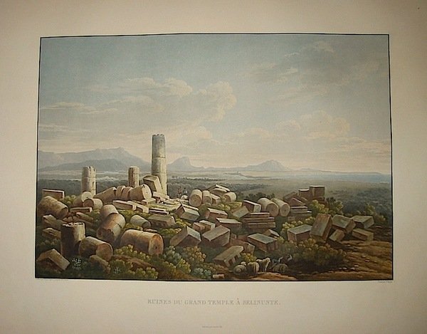 Acquatinta originale (cm. 42,5x29,5) tratta dal ‘Voyage pittoresque en Sicile’ di Achille Etienne Gigault de la Salle. Splendida coloritura coeva eseguita a spese dell’editore Firmin Didot. Ottimo esemplare ad ampi margini. Rara tiratura.