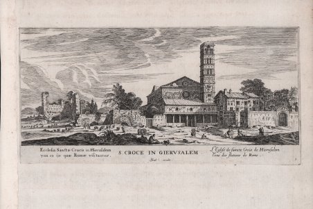 Veduta tratta dalla serie ' Les stations de Rome. ' Il Silvestre, incisore e disegnatore, nasce a Nancy nel 1621. Come era consuetudine all'epoca, fece diversi viaggi in Italia per copiare i vecchi maestri e per migliorare le sue abilità con i più grandi maestri. Faucheux fissa le date di questi viaggi, il primo prima del 1640 (Israel non aveva ancora 20 anni), il secondo dal 1643 al 1644 e l'ultimo intorno al 1653. Israel portò con sé molte vedute dell'Italia, quasi tutte incise. Fino al 1659, fece altri viaggi in Francia e in Lorena, da cui trasse molti disegni e incisioni. Il suo stile fu, all'inizio, piuttosto sciolto, ma dal 1643 in poi divenne più raffinato e delicato, acquisendo accuratezza e precisione senza essere asciutto, risultando a volte simile a quello di Jacques Callot o di Stefano della Bella, con i quali ebbe rapporti di amicizia attraverso il suo zio materno e mentore, l’editore Israël Henriet. Accanto alle testimonianze per la Roma antica mostrò ben presto un grandissimo interesse per la città "moderna", divenendo uno dei precursori del vedutismo - non solo nel campo incisorio - anticipando artisti come Lievin Cruyl e Gaspar van Wittel. È praticamente impossibile fare un inventario completo delle opere di Israël Silvestre, tanto era prolifico l'artista. Ha lasciato numerosi disegni e più di mille incisioni. Tra le sue opere più belle, possiamo tuttavia menzionare le numerose e complesse “piccole” suite (composte da poche tavole) sulle piazze, le chiese e le antichità di Roma. Acquaforte, in ottimo stato di conservazione. Bibliografia L. E. Faucheux, Catalogue raisonné de toutes les estampes qui forment l'oeuvre d'Israel Silvestre: précédé d'une notice sur sa vie (1857), n. 2.3; F. Baré, Israël Silvestre et sa famille, suivi du catalogue de son oeuvre (1885), n. 809. View taken from the series ' Les stations de Rome. ' Les stations de Rome, suite of 10 numbered pieces, not including the title. The inscriptions of this suite are in French (italic characters) and in Latin (Roman characters). The title of each piece which separates the Latin inscription from the French inscription is in Italian and in large characters. Silvestre, engraver and draftsman, was born in Nancy in 1621. As was customary at the time, he made several trips to Italy to copy the old masters and to improve his skills with the greatest masters. Faucheux fixes the dates of these trips, the first before 1640 (Israel was not yet 20 years old), the second from 1643 to 1644 and the last around 1653. Israel brought with him many views of Italy, almost all of them engraved. Until 1659, he made other trips to France and Lorraine, from which he took many drawings and engravings. His style was, at the beginning, rather loose, but from 1643 onwards became more refined and delicate, acquiring accuracy and precision without being dry, resulting sometimes similar to that of Jacques Callot or Stefano della Bella, with whom he had friendly relations through his maternal uncle and mentor, the publisher Israël Henriet. Alongside the testimonies to ancient Rome, he soon showed great interest in the "modern" city, becoming one of the precursors of vedutism - not only in the field of engraving - anticipating artists such as Lievin Cruyl and Gaspar van Wittel. It is quite impossible here to make a complete inventory of Israël Silvestre's works, so prolific was the artist. He left numerous drawings and more than a thousand engravings. However, among his most beautiful works, we can mention the many complex "small" suites (composed of a few plates) on the squares, churches and antiquities of Rome. Etching, in excellent condition. Bibliografia L. E. Faucheux, Catalogue raisonné de toutes les estampes qui forment l'oeuvre d'Israel Silvestre: précédé d'une notice sur sa vie (1857), n. 2.3; F. Baré, Israël Silvestre et sa famille, suivi du catalogue de son oeuvre (1885), n. 809. Cfr.