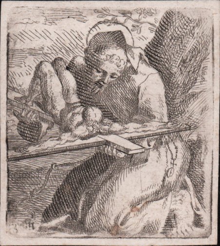 Acquaforte, circa 1670, numerata in basso. Esemplare nel secondo stato di tre, prima delle lettere “A.C. IN.”. ' Pubblicata a Roma da Vincenzo Billy. Bellissima prova, impressa su carta vergata coeva, con sottili margini, in ottimo stato di conservazione. Marcantonio Bellavia era un’artista siciliano, del quale si ignorano sia il luogo sia la data di nascita. Può solo stabilirsi, per evidenza di documenti, che tra l'anno 1668 e il 1670 egli era a Roma, dove svolse peraltro tutta l'attività di pittore e d'incisore a noi nota. Della sua attività d'incisore si servirono mercanti poco scrupolosi che pubblicarono, dopo la morte dell'artista, le sue stampe come opere di Annibale Carracci. Una prima volta, agli inizi del sec. XVIII, Vincenzo Billy pubblicò 60 incisioni del Bellavia con l'indicazione: ' Opere diverse di Annibale Carracci. ' Si stampano da Vincenzo Bellii in Roma ' all'Orologio alla Chiesa Nova. ' A(nnibale) ' C(arracci) ' I. Ma la loro appartenenza al Bellavia è inequivocabilmente provata dalla comparsa in molte incisioni del suo monogramma ("M.A.B." e "M.A.B.I.") e in una - la 39ª - addirittura della iscrizione: "Marcus Antonius, Bellavia in. et pr. Rome". Più tardi Venanzio Monaldini ripubblicò 38 incisioni del Bellavia raccogliendole in un volume dal titolo: ' Pensieri diversi lineati et intagliati d'Anibale Caracci. ' Si vendono presso V. ' Monaldini. A tutti i pezzi il Monaldini aggiunse le lettere "A.C. IN.". Bibliografia M. Pepe, ' Marcantonio Bellavia, in “Dizionario Biografico degli Italiani” - Volume 7 (1970); cfr. Bartsch, XX, p. 22 - 23, Bartsh ill., v. 44. TBI, 7, p. 619. Etching, circa 1670, numbered at the bottom. Example in the second state of three, before the letters "A.C. IN." ' Published in Rome by Vincenzo Billy. A good impression, printed on contemporary laid paper, with thin margins, in very good condition. Marcantonio Bellavia was a Sicilian artist, whose place and date of birth are unknown. It can only be established, by documentary evidence, that between the years 1668 and 1670 he was in Rome, where, moreover, he carried out all his activity as a painter and engraver known to us. His activity as an engraver was used by unscrupulous dealers who published, after the artist's death, his prints as works by Annibale Carracci. A first time, in the early 18th century, Vincenzo Billy published 60 engravings by Bellavia with the indication: ' Opere diverse di Annibale Carracci. ' Si stampano da Vincenzo Bellii in Roma ' all'Orologio alla Chiesa Nova. ' A(nnibale) ' C(arracci) ' I. But their belonging to Bellavia is unequivocally proved by the appearance in many engravings of his monogram ("M.A.B." and "M.A.B.I.") and in one - the 39th - even of the inscription: "Marcus Antonius, Bellavia in. et pr. ' Rome." ' Later Venanzio Monaldini republished 38 engravings by Bellavia, collecting them in a volume entitled: ' Pensieri diversi lineati et intagliati d'Anibale Caracci. ' They are sold at V. Monaldini. To all the pieces Monaldini added the letters "A.C. IN." Bibliografia M. Pepe, Marcantonio Bellavia, in “Dizionario Biografico degli Italiani” - Volume 7 (1970); cfr. Bartsch, XX, p. 22 - 23, Bartsh ill., v. 44. TBI, 7, p. 619. Cfr.