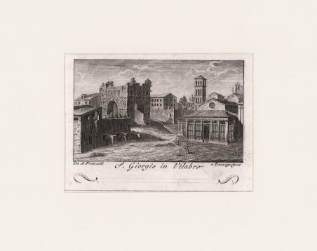 Veduta tratta dalla celebre Raccolta di num. 320 Vedute sì antiche, che moderne della città di Roma. …Incise a bulino in N. 80 rami, In Roma Nella Calcografia di Agapito Franzetti a Torsanguigna Col Permesso. ' L’opera si compone di un frontespizio calcografico e di 80 tavole numerate, ognuna composta da quattro vedute. Viene stampata senza data; molti repertori la datano intorno al 1790 circa, forse perché stampata su carta vergata. Una datazione intorno al 1800 ci sembra tuttavia più plausibile. ' Agapito Franzetti, calcografo attivo a Roma con bottega tra via del Corso e Torsanguigna, è noto per le sue piccole incisioni di veduta che servivano spesso come biglietti da visita. Tutte contengono, infatti, una linea in basso, dove si poteva apporre il proprio nome ad inchiostro. Come indicato nel titolo, le vedute raffigurano sia monumenti e antiche rovine che vedute “moderne”, con piazze, chiese e ville. Ciascuna tavola reca, in basso al centro, il nome dell’incisore. Gli artisti coinvolti sono sei: Jean-Jerome Baugean; Antonio Giuseppe Barbazza; Giovanni Battista Cipriani; Francesco Morelli; Antonio Poretta e Domenico Pronti. Molte delle vedute derivano dalla celebre opera di Giuseppe Vasi, Delle magnificenze di Roma antica e moderna. Pubblicata in 10 volumi dal 1747 al 1761, l’opera presenta 238 incisioni in rame, ciascuna incisione con testo narrativo che fornisce informazioni storiche e documentarie. ' Acquaforte, in buono stato di conservazione. ' Bibliografia: A. Bertarelli, H. Prior, Il biglietto da visita italiano. Cintributo alla storia del costume e dell'incisione nel secolo XVII, Bergamo 1911, p. 162. View of the city printed in Rome by the publisher Agapito Franzetti. Taken from Raccolta di num. 320 Vedute sì antiche, che moderne della città di Roma. …Incise a bulino in N. 80 rami, In Roma Nella Calcografia di Agapito Franzetti a Torsanguigna Col Permesso. ' The work consists of an intaglio frontispiece and 80 numbered plates, each consisting of four views. It is printed without date; many repertories date it around 1790, perhaps because it was printed on laid paper. A date around 1800 seems more plausible. Franzetti, a chalcographer working in Rome with a workshop between Via del Corso and Torsanguigna, is known for his small engravings of views that were often used as business cards. They all contain a line at the bottom where one's name could be written in ink. The small views were often printed four to a sheet. As indicated in the title, the views depict both monuments and ancient ruins and "modern" views, with squares, churches and villas. Each table bears, at the bottom center, the name of the engraver. There are six artists involved: Jean-Jerome Baugean; Antonio Giuseppe Barbazza; Giovanni Battista Cipriani; Francesco Morelli; Antonio Poretta and Domenico Pronti. ' The views are made after Giuseppe Vasi’s monumental work Delle magnificenze di Roma antica e moderna. Published in 10 volumes from 1747 to 1761, the work features 238 copper engravings, each engraving with a narrative text that provides historical and documentary information. ' Bibliografia: A. Bertarelli, H. Prior, Il biglietto da visita italiano. Contributo alla storia del costume e dell'incisione nel secolo XVII, Bergamo 1911, p. 162. Cfr.