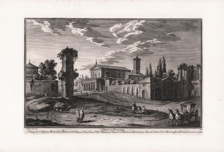 Veduta tratta dalla monumentale opera ' Delle magnificenze di Roma antica e moderna.Pubblicata in 10 volumi dal 1747 al 1761, l’opera presenta 238 incisioni in rame, ciascuna incisione con testo narrativo che fornisce informazioni storiche e documentarie. ' Conosciuto dai più semplicemente come il "maestro" di Giovanni Battista Piranesi, Giuseppe Vasi rivela in quest'opera monumentale la pienezza della sua creatività grafica. I 10 libri che la compongono hanno ognuno un frontespizio con titolo e data diversi: ' Libro primo che contiene le porte e mura; Libro secondo, che contiene le piazze principali di Roma con obelischi, colonne, ed altri ornamenti; Libro terzo, che contiene le basiliche e chiese antiche di Roma; Libro quarto che contiene i palazzi e le vie più celebri; Libro quinto che contiene i ponti e gli edifizj sul Libro sesto che contiene la chiese parrocchiali; Libro settimo che contiene i conventi e case dei chierici regolari; Libro ottavo che contiene i monasteri e conservatorj di donne; Libro nono che contiene i collegj, spedali, e luoghi pii; decimo che contiene le ville e giardini più rimarchevoli. Le ' Magnificenze ' forniscono un panorama completo e al tempo stesso anticonvenzionale dell'Urbe: così, insieme alle consuete, celeberrime inquadrature desunte dalla migliore tradizione vedutistica, si trova anche una Roma insolita, quella che, talvolta, non esiste più. A quest'opera, di centrale importanza nell'editoria romana di metà Settecento, l'Autore aveva lavorato per quasi un ventennio realizzando una monumentale guida dell'Urbe dove accanto alle consuete e celeberrime inquadrature tratte dalla migliore tradizione vedutistica, immortala anche scorci insoliti che sono poi scomparsi con il cambiare della città. Il testo che accompagna le vedute nel primo volume è opera di Giuseppe Bianchini, nel secondo di Orazio Orlandi e nei restanti del Vasi stesso. A partire dall'edizione del 1786, l'opera del Vasi, fu aggiornata dal figlio Mariano, che la pubblicò col titolo ' Raccolta delle più belle vedute antiche, e moderne di Roma, mostrando solo il nome del padre come autore. Questa nuova edizione presentava molte tavole della prima edizione, ed alcune nuove. Anche la pubblicazione di Mariano Vasi fu stampata più volte, sempre con l’aggiunta di nuove tavole. Esemplare tratto dall'edizione del 1786. Acquaforte, stampata su carta vergata coeva, completa dei margini, in ottimo stato di conservazione. ' View taken from the monumental work ' Delle magnificenze di Roma antica e moderna. Published in 10 volumes from 1747 to 1761, the work features 238 copper engravings, each engraving with a narrative text that provides historical and documentary information. Known by most simply as the "master" of Giovanni Battista Piranesi, Giuseppe Vasi reveals in this monumental work the fullness of his graphic creativity. The 10 books that compose it each have a title page with a different title and date: ' Libro primo che contiene le porte e mura; Libro secondo, che contiene le piazze principali di Roma con obelischi, colonne, ed altri ornamenti; Libro terzo, che contiene le basiliche e chiese antiche di Roma; Libro quarto che contiene i palazzi e le vie più celebri; Libro quinto che contiene i ponti e gli edifizj sul Libro sesto che contiene la chiese parrocchiali; Libro settimo che contiene i conventi e case dei chierici regolari; Libro ottavo che contiene i monasteri e conservatorj di donne; Libro nono che contiene i collegj, spedali, e luoghi pii; decimo che contiene le ville e giardini più rimarchevoli. The ' Magnificences ' provide a complete and at the same time unconventional panorama of the City: thus, together with the usual, celebrated shots taken from the best tradition of ' vedutistica, one also finds an unusual Rome, one that, at times, no longer exists. The author had worked on this work, of central importance in Roman publishing in the middle of the eighteenth century, for almost twenty years, producing a monumental guide to the “Urbe” where, alongside the usual and famous shots taken from the best tradition of ' vedutistica, he also immortalized unusual views that have since disappeared with the change of the city. The text that accompanies the views in the first volume is by Giuseppe Bianchini, in the second by Orazio Orlandi and in the remaining ones by Vasi himself. Starting from the edition of 1786, the work of Vasi, was updated by his son Mariano, who published it under the title ' Raccolta delle più belle vedute antiche, e moderne di Roma, showing only the name of his father as author. This new edition presented many plates of the first edition, and some new ones. The publication of Mariano Vasi was also printed several times, always with the addition of new plates. ' View taken from 1786 edition of the Vasi’s ' Delle Magnificenze di Roma Antica e Moderna. Etching, printed on contemporary laid paper, in very good condition. Cfr. Scalabroni, 128