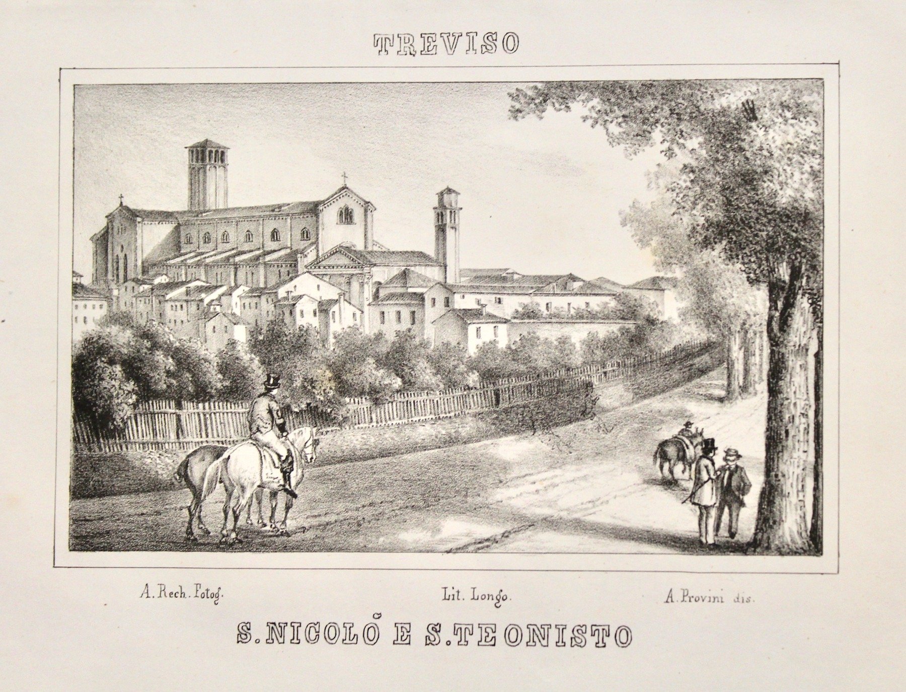 Litografia, mm 102x163 (immagine). Bella ed inconsueta veduta eseguita sulla base di un soggetto fotografico di A. Rech, disegnata su pietra da A. Provini. Non comune.