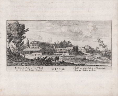 Veduta tratta dalla serie ' Les stations de Rome. ' Il Silvestre, incisore e disegnatore, nasce a Nancy nel 1621. Come era consuetudine all'epoca, fece diversi viaggi in Italia per copiare i vecchi maestri e per migliorare le sue abilità con i più grandi maestri. Faucheux fissa le date di questi viaggi, il primo prima del 1640 (Israel non aveva ancora 20 anni), il secondo dal 1643 al 1644 e l'ultimo intorno al 1653. Israel portò con sé molte vedute dell'Italia, quasi tutte incise. Fino al 1659, fece altri viaggi in Francia e in Lorena, da cui trasse molti disegni e incisioni. Il suo stile fu, all'inizio, piuttosto sciolto, ma dal 1643 in poi divenne più raffinato e delicato, acquisendo accuratezza e precisione senza essere asciutto, risultando a volte simile a quello di Jacques Callot o di Stefano della Bella, con i quali ebbe rapporti di amicizia attraverso il suo zio materno e mentore, l’editore Israël Henriet. Accanto alle testimonianze per la Roma antica mostrò ben presto un grandissimo interesse per la città "moderna", divenendo uno dei precursori del vedutismo - non solo nel campo incisorio - anticipando artisti come Lievin Cruyl e Gaspar van Wittel. È praticamente impossibile fare un inventario completo delle opere di Israël Silvestre, tanto era prolifico l'artista. Ha lasciato numerosi disegni e più di mille incisioni. Tra le sue opere più belle, possiamo tuttavia menzionare le numerose e complesse “piccole” suite (composte da poche tavole) sulle piazze, le chiese e le antichità di Roma. Acquaforte, in ottimo stato di conservazione. Bibliografia L. E. Faucheux, Catalogue raisonné de toutes les estampes qui forment l'oeuvre d'Israel Silvestre: précédé d'une notice sur sa vie (1857), n. 2.2; F. Baré, Israël Silvestre et sa famille, suivi du catalogue de son oeuvre (1885), n. 808. View taken from the series ' Les stations de Rome. ' Les stations de Rome, suite of 10 numbered pieces, not including the title. The inscriptions of this suite are in French (italic characters) and in Latin (Roman characters). The title of each piece which separates the Latin inscription from the French inscription is in Italian and in large characters. Silvestre, engraver and draftsman, was born in Nancy in 1621. As was customary at the time, he made several trips to Italy to copy the old masters and to improve his skills with the greatest masters. Faucheux fixes the dates of these trips, the first before 1640 (Israel was not yet 20 years old), the second from 1643 to 1644 and the last around 1653. Israel brought with him many views of Italy, almost all of them engraved. Until 1659, he made other trips to France and Lorraine, from which he took many drawings and engravings. His style was, at the beginning, rather loose, but from 1643 onwards became more refined and delicate, acquiring accuracy and precision without being dry, resulting sometimes similar to that of Jacques Callot or Stefano della Bella, with whom he had friendly relations through his maternal uncle and mentor, the publisher Israël Henriet. Alongside the testimonies to ancient Rome, he soon showed great interest in the "modern" city, becoming one of the precursors of vedutism - not only in the field of engraving - anticipating artists such as Lievin Cruyl and Gaspar van Wittel. It is quite impossible here to make a complete inventory of Israël Silvestre's works, so prolific was the artist. He left numerous drawings and more than a thousand engravings. However, among his most beautiful works, we can mention the many complex "small" suites (composed of a few plates) on the squares, churches and antiquities of Rome. Etching, in excellent condition. Bibliografia L. E. Faucheux, Catalogue raisonné de toutes les estampes qui forment l'oeuvre d'Israel Silvestre: précédé d'une notice sur sa vie (1857), n. 2.2; F. Baré, Israël Silvestre et sa famille, suivi du catalogue de son oeuvre (1885), n. 808. Cfr.