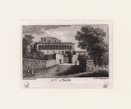 Veduta tratta dalla celebre Raccolta di num. 320 Vedute sì antiche, che moderne della città di Roma. …Incise a bulino in N. 80 rami, In Roma Nella Calcografia di Agapito Franzetti a Torsanguigna Col Permesso. ' L’opera si compone di un frontespizio calcografico e di 80 tavole numerate, ognuna composta da quattro vedute. Viene stampata senza data; molti repertori la datano intorno al 1790 circa, forse perché stampata su carta vergata. Una datazione intorno al 1800 ci sembra tuttavia più plausibile. ' Agapito Franzetti, calcografo attivo a Roma con bottega tra via del Corso e Torsanguigna, è noto per le sue piccole incisioni di veduta che servivano spesso come biglietti da visita. Tutte contengono, infatti, una linea in basso, dove si poteva apporre il proprio nome ad inchiostro. Come indicato nel titolo, le vedute raffigurano sia monumenti e antiche rovine che vedute “moderne”, con piazze, chiese e ville. Ciascuna tavola reca, in basso al centro, il nome dell’incisore. Gli artisti coinvolti sono sei: Jean-Jerome Baugean; Antonio Giuseppe Barbazza; Giovanni Battista Cipriani; Francesco Morelli; Antonio Poretta e Domenico Pronti. Molte delle vedute derivano dalla celebre opera di Giuseppe Vasi, Delle magnificenze di Roma antica e moderna. Pubblicata in 10 volumi dal 1747 al 1761, l’opera presenta 238 incisioni in rame, ciascuna incisione con testo narrativo che fornisce informazioni storiche e documentarie. ' Acquaforte, in buono stato di conservazione. ' Bibliografia: A. Bertarelli, H. Prior, Il biglietto da visita italiano. Contributo alla storia del costume e dell'incisione nel secolo XVII, Bergamo 1911, p. 162. View of the city printed in Rome by the publisher Agapito Franzetti. Taken from Raccolta di num. 320 Vedute sì antiche, che moderne della città di Roma. …Incise a bulino in N. 80 rami, In Roma Nella Calcografia di Agapito Franzetti a Torsanguigna Col Permesso. ' The work consists of an intaglio frontispiece and 80 numbered plates, each consisting of four views. It is printed without date; many repertories date it around 1790, perhaps because it was printed on laid paper. A date around 1800 seems more plausible. Franzetti, a chalcographer working in Rome with a workshop between Via del Corso and Torsanguigna, is known for his small engravings of views that were often used as business cards. They all contain a line at the bottom where one's name could be written in ink. The small views were often printed four to a sheet. As indicated in the title, the views depict both monuments and ancient ruins and "modern" views, with squares, churches and villas. Each table bears, at the bottom center, the name of the engraver. There are six artists involved: Jean-Jerome Baugean; Antonio Giuseppe Barbazza; Giovanni Battista Cipriani; Francesco Morelli; Antonio Poretta and Domenico Pronti. ' The views are made after Giuseppe Vasi’s monumental work Delle magnificenze di Roma antica e moderna. Published in 10 volumes from 1747 to 1761, the work features 238 copper engravings, each engraving with a narrative text that provides historical and documentary information. ' Bibliografia: A. Bertarelli, H. Prior, Il biglietto da visita italiano. Contributo alla storia del costume e dell'incisione nel secolo XVII, Bergamo 1911, p. 162. Cfr.