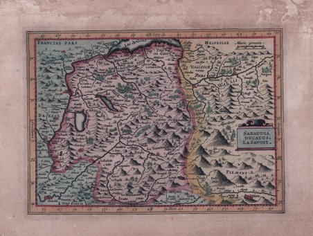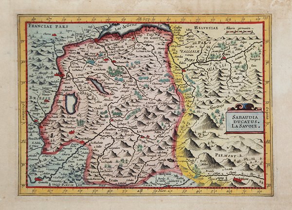 Carta geografica della Liguria, per la prima volta pubblicata in "Nova et accurata Italia" edito a Leida nel 1627.Tuttavia questo esemplare non presenta il testo al verso che si trova in tutte le carte tratte dall’atlante del Hondius. Si tratta di una di una rara edizione successiva, realizzata ad Amsterdam da Henri du Sauzet nel 1734 nel "Atlas Portatif" raccolta di 285 carte geografiche di diversi autori.Incisione in rame, bella coloritura coeva dei contorni. Molto rara. Map of Savoy prepared by Jodocud Hondius Jr. for the ' from Nova et accurata Italiae hodiernae descriptio in qua omnium eius regionum, vrbium, pagorum, dominiorum, castellorum, montium, fluviorum, fontium, lacuum, et portuum, historia exhibetur. Geographicis tabulis et vrbium praecipuarum iconibus illustrata a Iudoco Hondio addita est Siciliae, Sardiniae, Corsicae, et itinerariorum per Italiam brevis delineatio, printed in Leiden by the printing house Elzevir in 1627. This is a geographical atlas combined with a town book, exclusively dedicated to Italy. ' ' The work consists of 31 maps and 67 views or plans of cities. The maps derive from Mercator's ' Atlas Minor, ' while the plans are based on the models introduced in Venice by Francesco Valegio and those of ' Civitates Orbis Terrarum ' by G. Braun and F. Hogenberg. The work is related to the period in which Jodocus Hondius II had just separated from his brother Hendrick. According to the literature there is a first edition of the collection, printed in Amsterdam in 1626. This example, lacking the text on the verso, is a later 1734 reprint edited by publisher Henri du Sauzet and included in ' Atlas portatif composé de CCLXXXV cartes, de plusieurs habiles geographes; où sont representées toutes les parties de la terre. Amsterdam, Henri Du Sauzet, 1734. (Koeman II, p. 546 Me 207). This is a collection of 285 maps by different authors, whose plates he had acquired. Jodocus Hondius Jr. was born in 1593, and his first signed publication was a map of Scandinavia, published in 1613. He was the son of Jodocus Hondius (1563-1612) - engraver, cartographer, printer and publisher - who was the founder of the Hondius printing house, one of the most important of the time. With the death - in 1612 - of Jodocus senior, his widow Coletta van den Keere continued the business with her two sons; Jodocus Jr. and Hendrick (1597-1651) took his place. In June 1621, Jodocus Jr. married Anne Staffmaecker and moved to a shop on the Dyke, where he established his publishing business. According to Peter van the Krogt (see ' Atlantes Neerlandici) Jodocus Hondius Jr. and his younger brother Hendrick were competitors. Henri du Sauzet (c. 1687-1754) was a bookseller and publisher of maps and atlases. - A native of Toulouse, a Huguenot or "apostate Jesuit" according to Voltaire, he arrived in Amsterdam around 1713. In 1715 he was admitted to the booksellers' guild in The Hague by order of the burgomasters, despite his lack of qualifications. He returned to Amsterdam, where he became a burgomaster and a member of the booksellers' guild in June 1718. Editor and director of several periodicals, notably the "Nouvelles littéraires" from January 1715 to June 1720, the "Mémoires de littérature" from 1715 to 1717, "La Bagatelle ou Discours ironiques" from May 1718 to April 1719 and the "Bibliothèque françoise ou Histoire littéraire de la France," which he continued from 1730 to 1746. In November 1747 he sold his movable property to creditors. An inventory of his business drawn up after his death on June 22, 1754 is known; the sale of his assets took place in September of the same year. Copper engraving, with contempory colouring, in good condition. ' Cfr.
