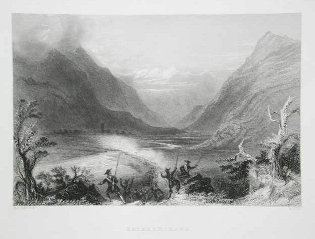 Veduta panoramica della valle, attraversata da militari