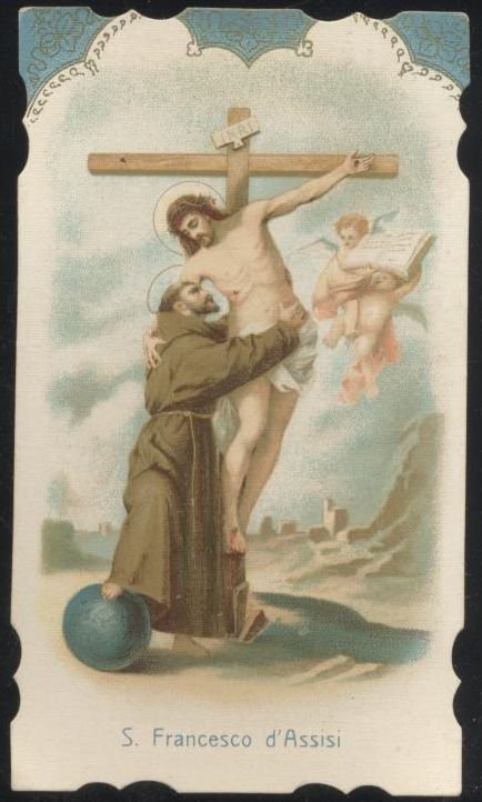 SAN FRANCESCO D'ASSISI santino antico Joan Rossi inizi '900 Guerra Immaginetta
