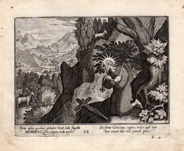 SAN GALLO - THOMAS de LEU [Leeuw or Le Leup or Deleu] (1560-1612) "Cernuus ante crucem proiecto corpore GALLUS" San Gallo, monaco, missionario e scrittore irlandese, visse come eremita ma raccolse attorno a sè molti allievi e combattè le usanze pagane.