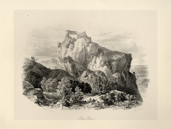 SAN LEO - "San Leone", Quaglio "Moore Lith. Veduta prospettica del paesaggio e della rocca.