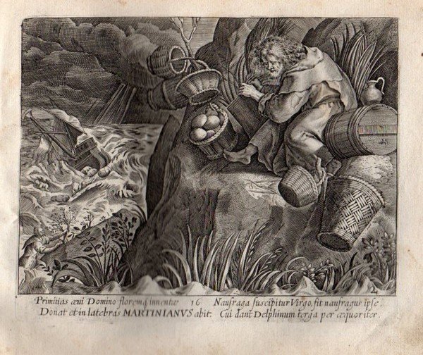 SAN MARTINIANO EREMITA - THOMAS de LEU [Leeuw or Le Leup or Deleu] (1560-1612) "Donat et in latebras MARTINIANUS abit." San Martiniano Eremita, patrono di Pecco. Per evitare le tentazioni visse senza fissa dimora.