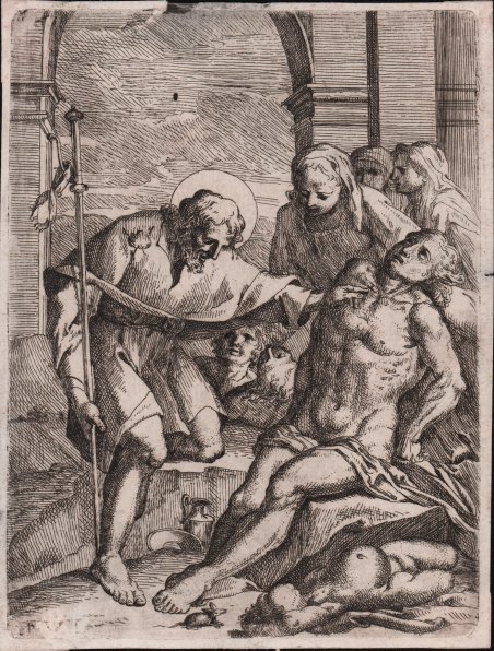 Acquaforte, circa 1670, numerata in basso. Esemplare nel secondo stato di tre, prima delle lettere “A.C. IN.”. ' Pubblicata a Roma da Vincenzo Billy. Bellissima prova, impressa su carta vergata coeva, con sottili margini, in ottimo stato di conservazione. Marcantonio Bellavia era un’artista siciliano, del quale si ignorano sia il luogo sia la data di nascita. Può solo stabilirsi, per evidenza di documenti, che tra l'anno 1668 e il 1670 egli era a Roma, dove svolse peraltro tutta l'attività di pittore e d'incisore a noi nota. Della sua attività d'incisore si servirono mercanti poco scrupolosi che pubblicarono, dopo la morte dell'artista, le sue stampe come opere di Annibale Carracci. Una prima volta, agli inizi del sec. XVIII, Vincenzo Billy pubblicò 60 incisioni del Bellavia con l'indicazione: ' Opere diverse di Annibale Carracci. ' Si stampano da Vincenzo Bellii in Roma ' all'Orologio alla Chiesa Nova. ' A(nnibale) ' C(arracci) ' I. Ma la loro appartenenza al Bellavia è inequivocabilmente provata dalla comparsa in molte incisioni del suo monogramma ("M.A.B." e "M.A.B.I.") e in una - la 39ª - addirittura della iscrizione: "Marcus Antonius, Bellavia in. et pr. Rome". Più tardi Venanzio Monaldini ripubblicò 38 incisioni del Bellavia raccogliendole in un volume dal titolo: ' Pensieri diversi lineati et intagliati d'Anibale Caracci. ' Si vendono presso V. ' Monaldini. A tutti i pezzi il Monaldini aggiunse le lettere "A.C. IN.". Bibliografia M. Pepe, ' Marcantonio Bellavia, in “Dizionario Biografico degli Italiani” - Volume 7 (1970); cfr. Bartsch, XX, p. 22 - 23, Bartsh ill., v. 44. TBI, 7, p. 619. Etching, circa 1670, numbered at the bottom. Example in the second state of three, before the letters "A.C. IN." ' Published in Rome by Vincenzo Billy. A good impression, printed on contemporary laid paper, with thin margins, in very good condition. Marcantonio Bellavia was a Sicilian artist, whose place and date of birth are unknown. It can only be established, by documentary evidence, that between the years 1668 and 1670 he was in Rome, where, moreover, he carried out all his activity as a painter and engraver known to us. His activity as an engraver was used by unscrupulous dealers who published, after the artist's death, his prints as works by Annibale Carracci. A first time, in the early 18th century, Vincenzo Billy published 60 engravings by Bellavia with the indication: ' Opere diverse di Annibale Carracci. ' Si stampano da Vincenzo Bellii in Roma ' all'Orologio alla Chiesa Nova. ' A(nnibale) ' C(arracci) ' I. But their belonging to Bellavia is unequivocally proved by the appearance in many engravings of his monogram ("M.A.B." and "M.A.B.I.") and in one - the 39th - even of the inscription: "Marcus Antonius, Bellavia in. et pr. ' Rome." ' Later Venanzio Monaldini republished 38 engravings by Bellavia, collecting them in a volume entitled: ' Pensieri diversi lineati et intagliati d'Anibale Caracci. ' They are sold at V. Monaldini. To all the pieces Monaldini added the letters "A.C. IN." Bibliografia M. Pepe, Marcantonio Bellavia, in “Dizionario Biografico degli Italiani” - Volume 7 (1970); cfr. Bartsch, XX, p. 22 - 23, Bartsh ill., v. 44. TBI, 7, p. 619. Cfr.