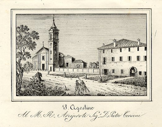 Litografia, f. 13x17 ca. In: Corty Enrico - Le Chiese Parrocchiali della Diocesi di Bologna. Bologna, Litografia Corty