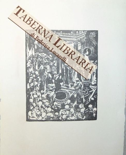 Xilografia orig. in sanguigna tratta dalla rivista "L'Eroica", gennaio 1924. Dimensioni relative alla sola parte incisa mm. 175x140 su foglio di mm.320x245. Buon es.