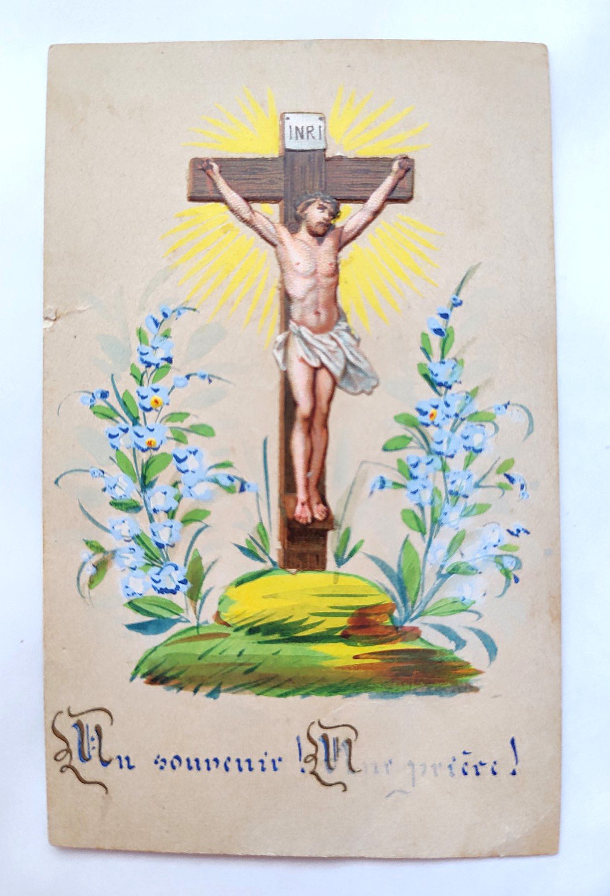 Santini manufatto Gesù sulla croce dipinto con immagine applicata holy card