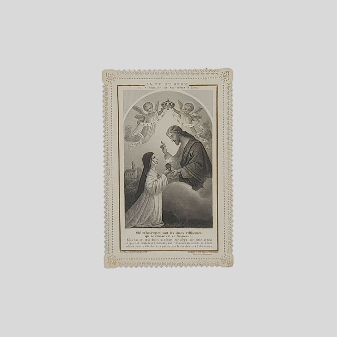 Immagine religiosa d'epoca, bordo in merletto cm 8x12. In buone condizioni.