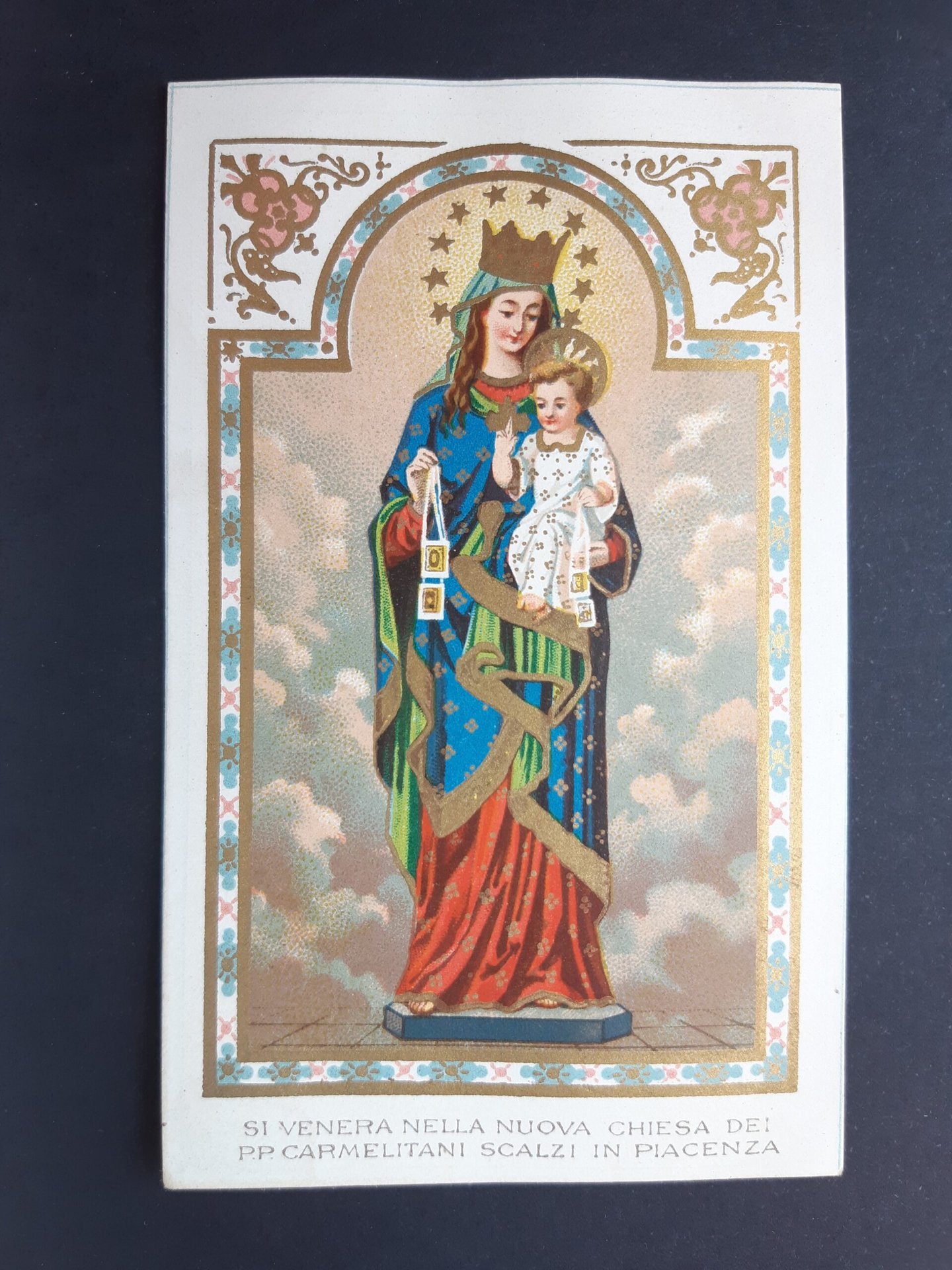 Santino Beata Vergine del Carmine orazione cromolito holy card