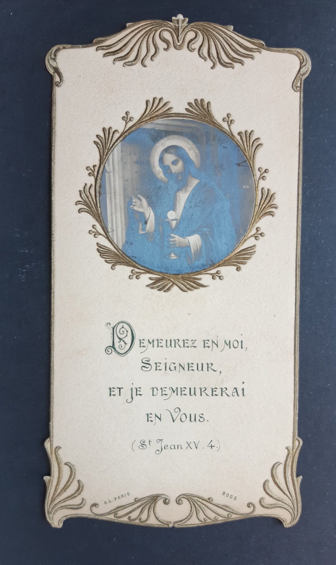 Santino Bouasse Lebel 9000 Gesù e l'eucarestia a rilievo holy card
