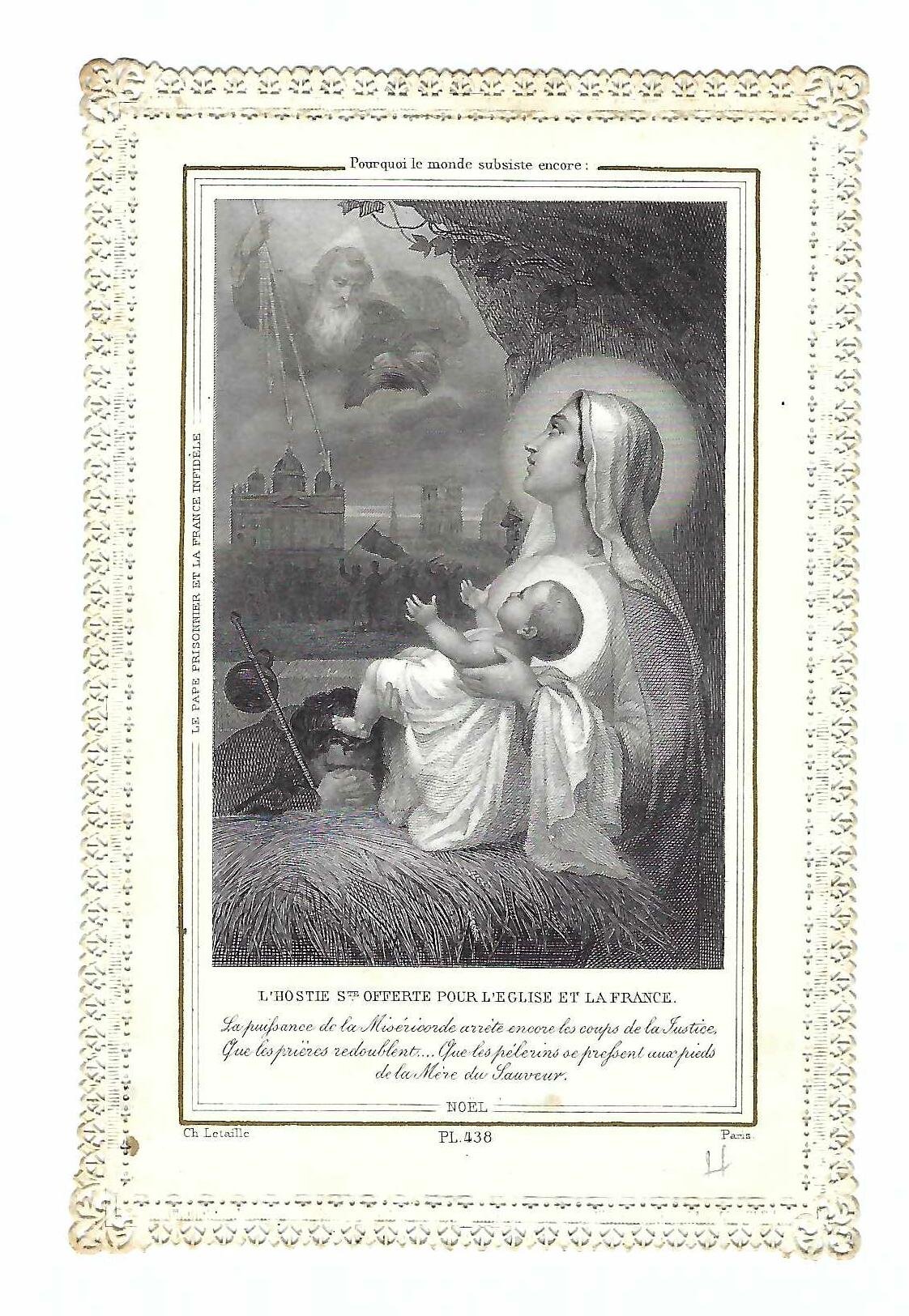 Santino canivet Holy card L' Hostie Sainte offerte pour l'Eglise .Letaille PL 438 XIX sec.