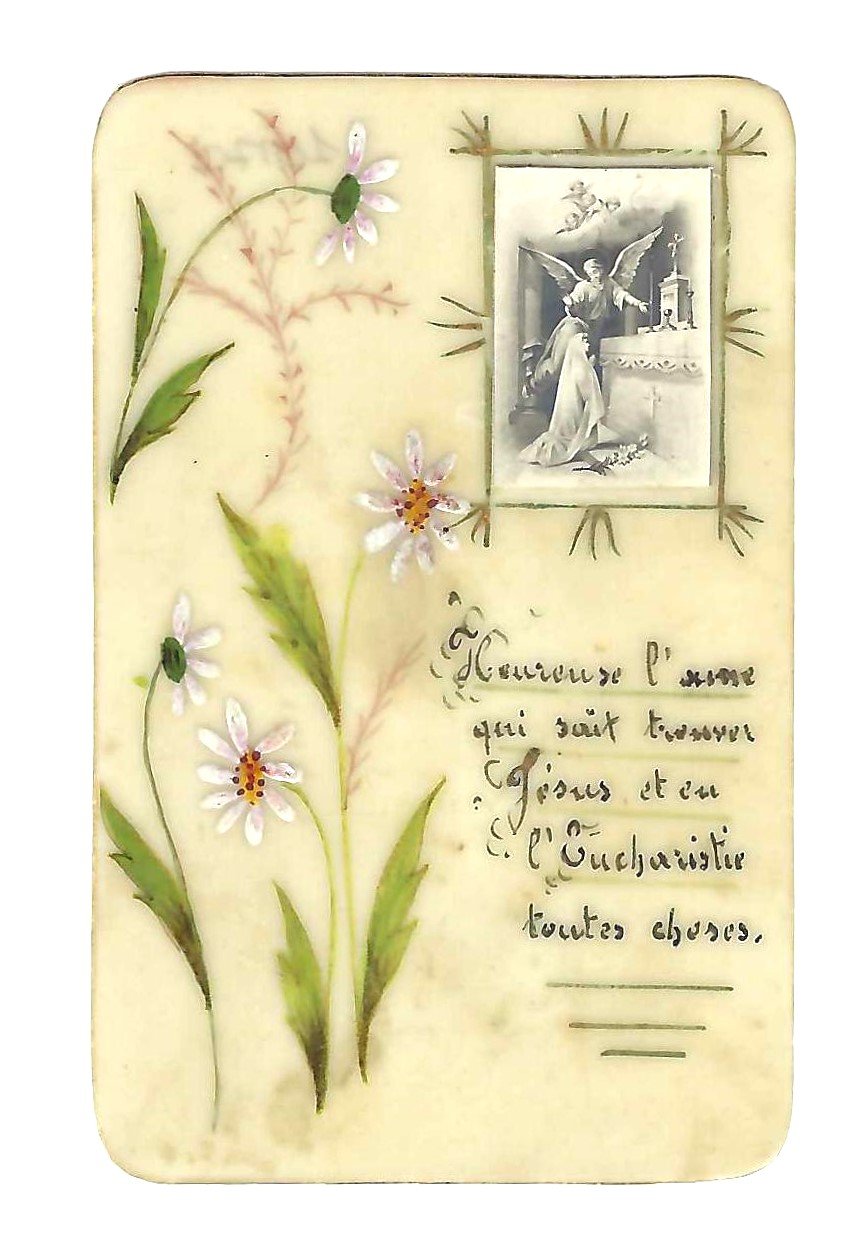 Santino Canivet Holy card manoscritto L'Annunciazione 1920 c.a. celluloide
