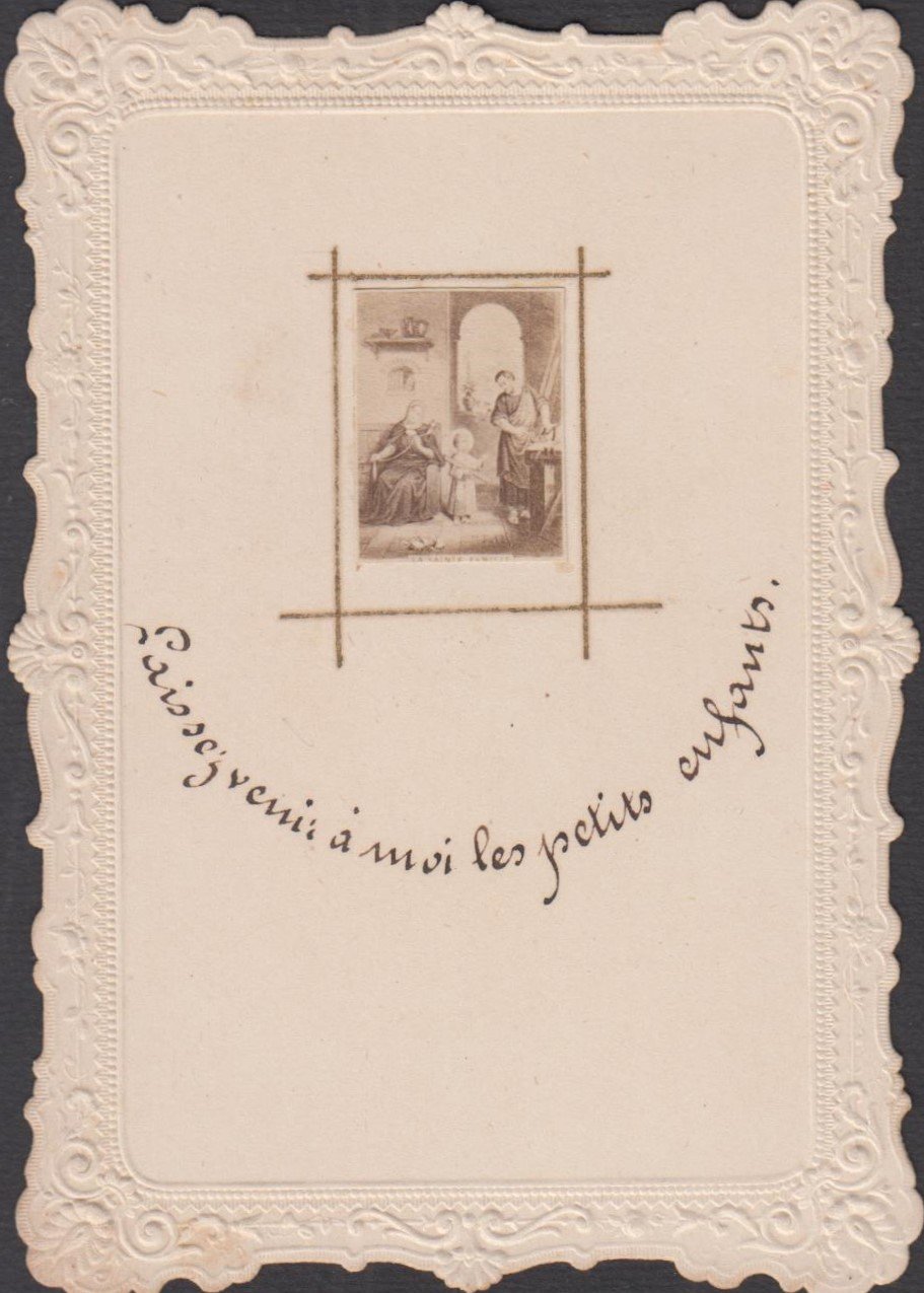Santino Canivet Holy card manoscritto La sacra Famiglia 1883