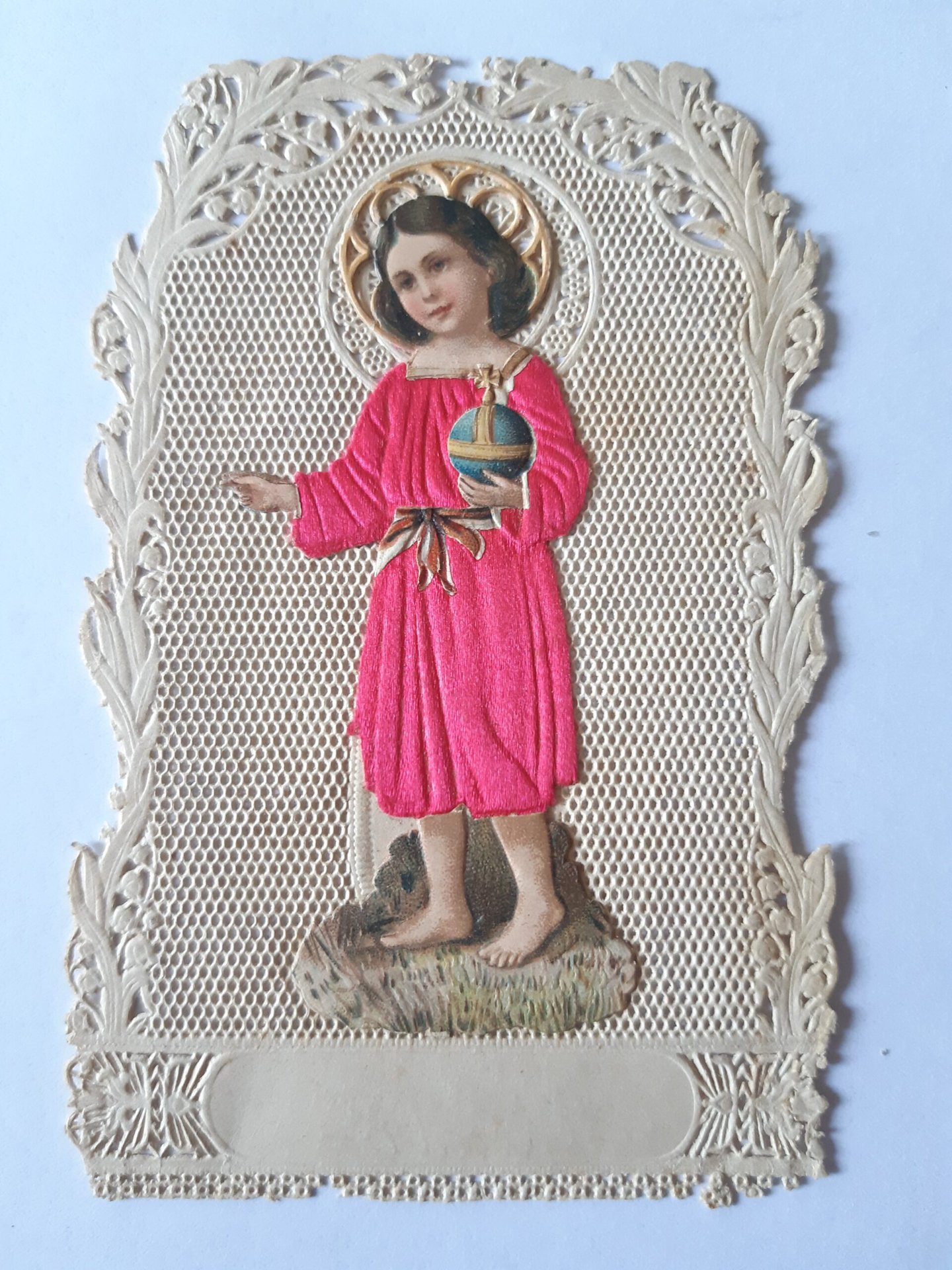 Santino canivet manufatto con immagine applicata Salvator Mundi in celluloide