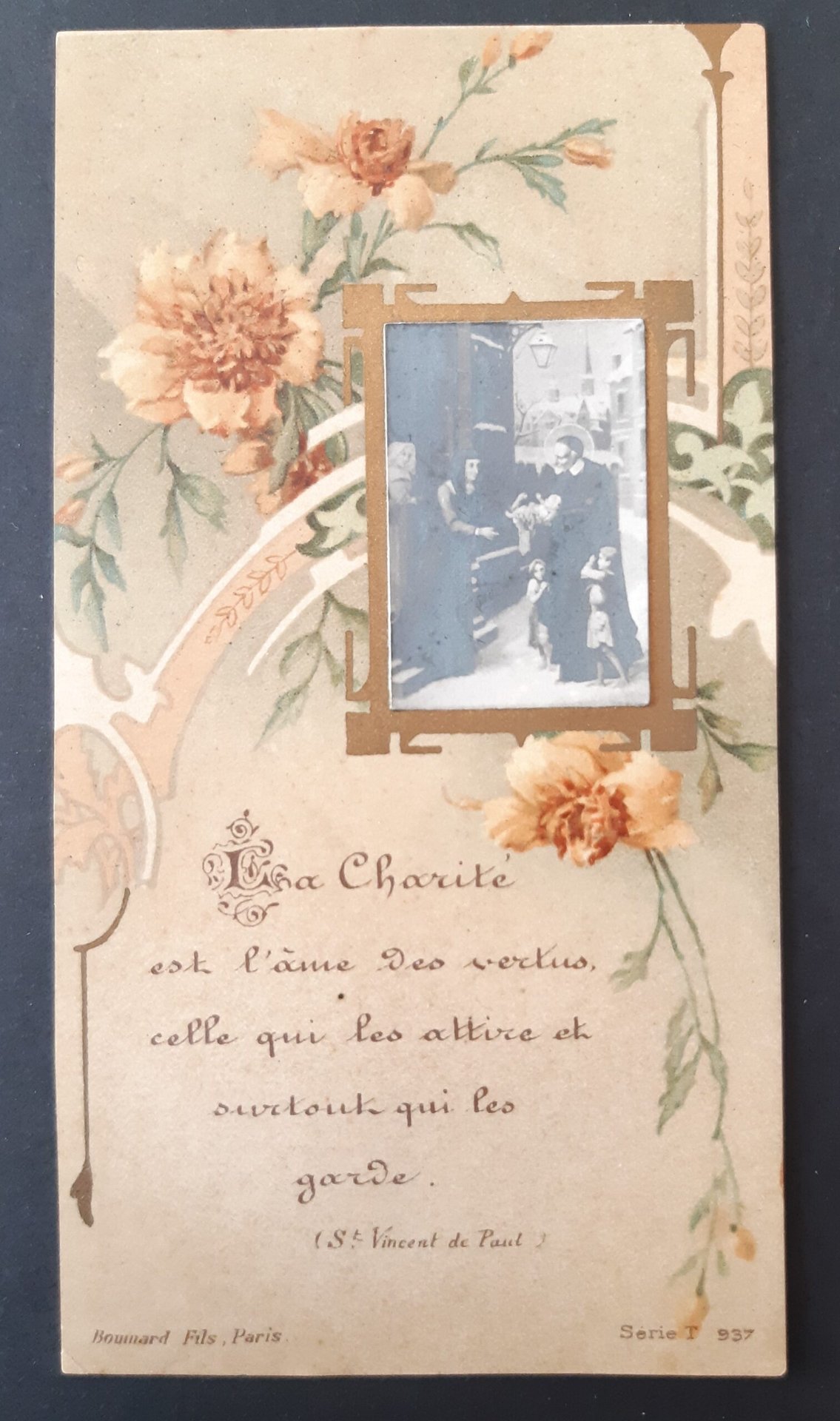 Santino carta pergamena S. Vincenzo de Paoli e la carità Boumard Serie T 937