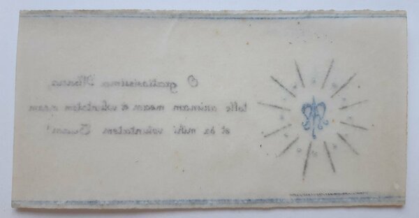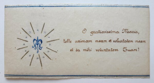 Santino manufatto con monogramma mariano su carta pergamena rigida dimensioni cm. 5,6 x 11,2
