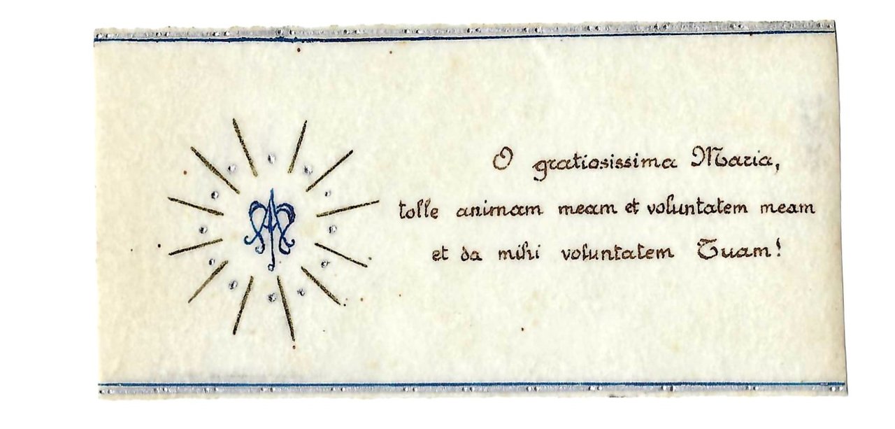 Santino con Monogramma mariano holy card manufatto 1940 c.a.