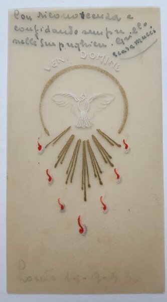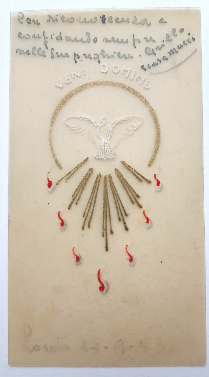 Santino holy card manufatto La discesa dello Sprito santo 1953