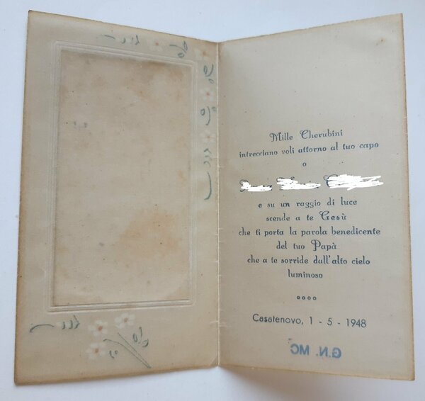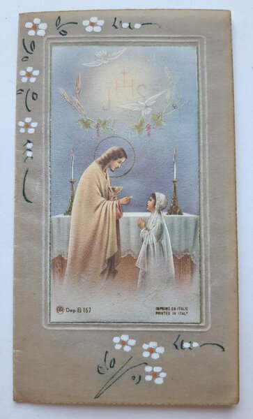 Santino holy card manufatto ricordo prima comunione 1948