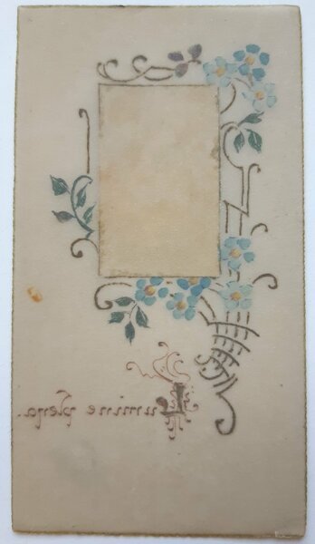 Santino manufatto su carta opaca con immagine applicata e decorazioni a mano in buono stato cm. 10,7 x 5,8