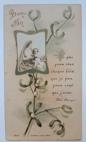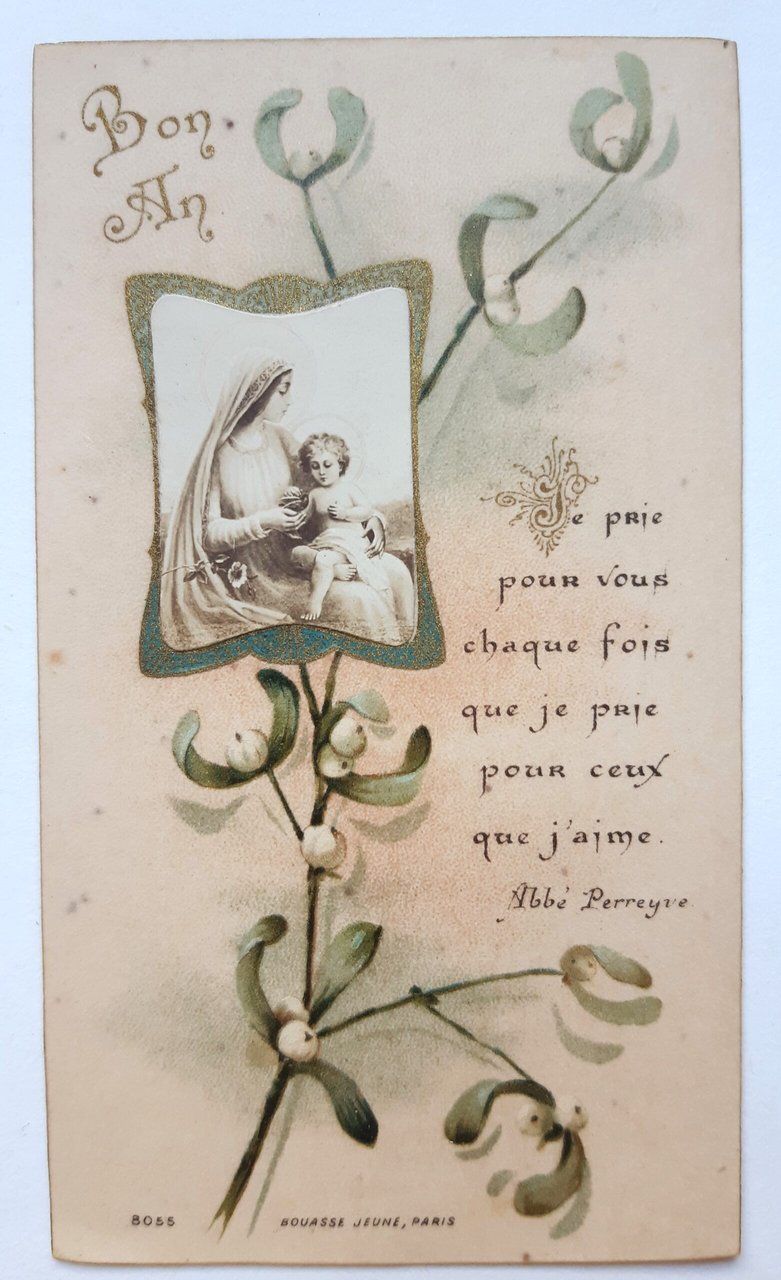 santino a stampa con augurio di buon anno, in buone condizioni, immagine applicata cm. 11,5 x 6,6