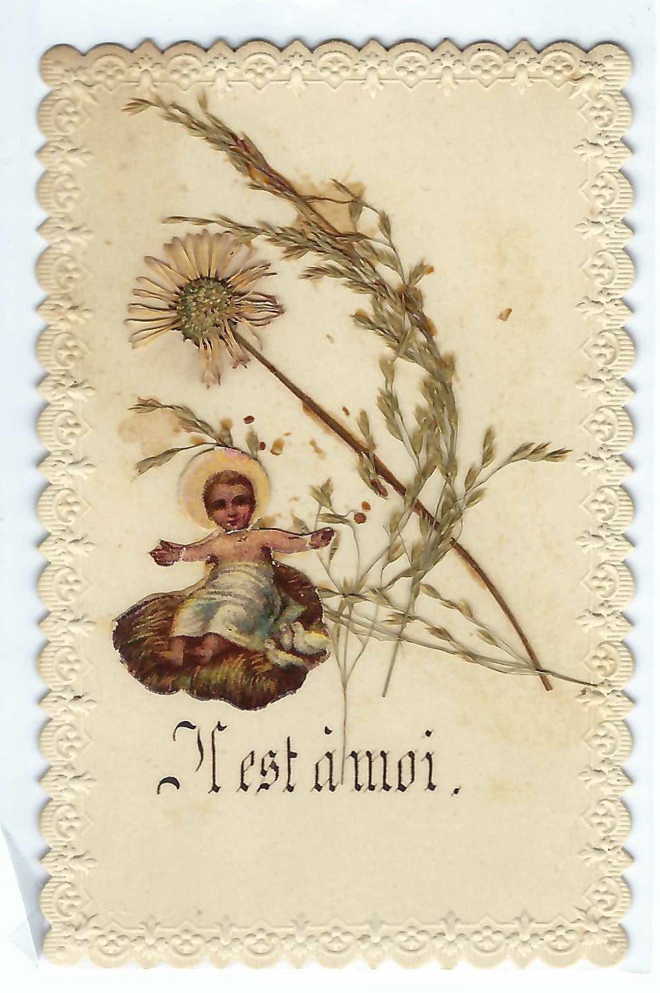 Santino manufatto Gesù bambino con fiori 1900 c.a. canivet holy card image pieuse