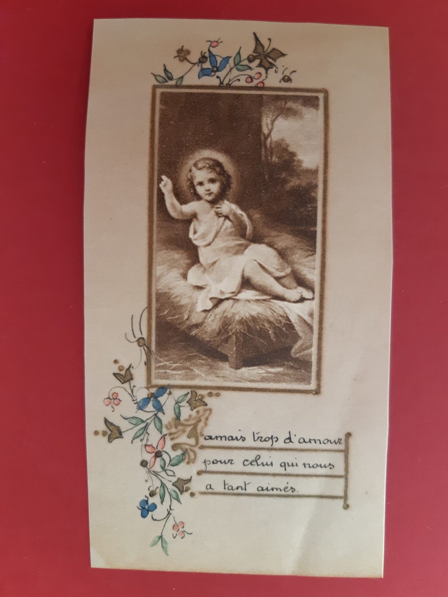 su carta pergamena in buone condizioni immagine applicata, dedica sul retro cm. 9,8 x 5,2