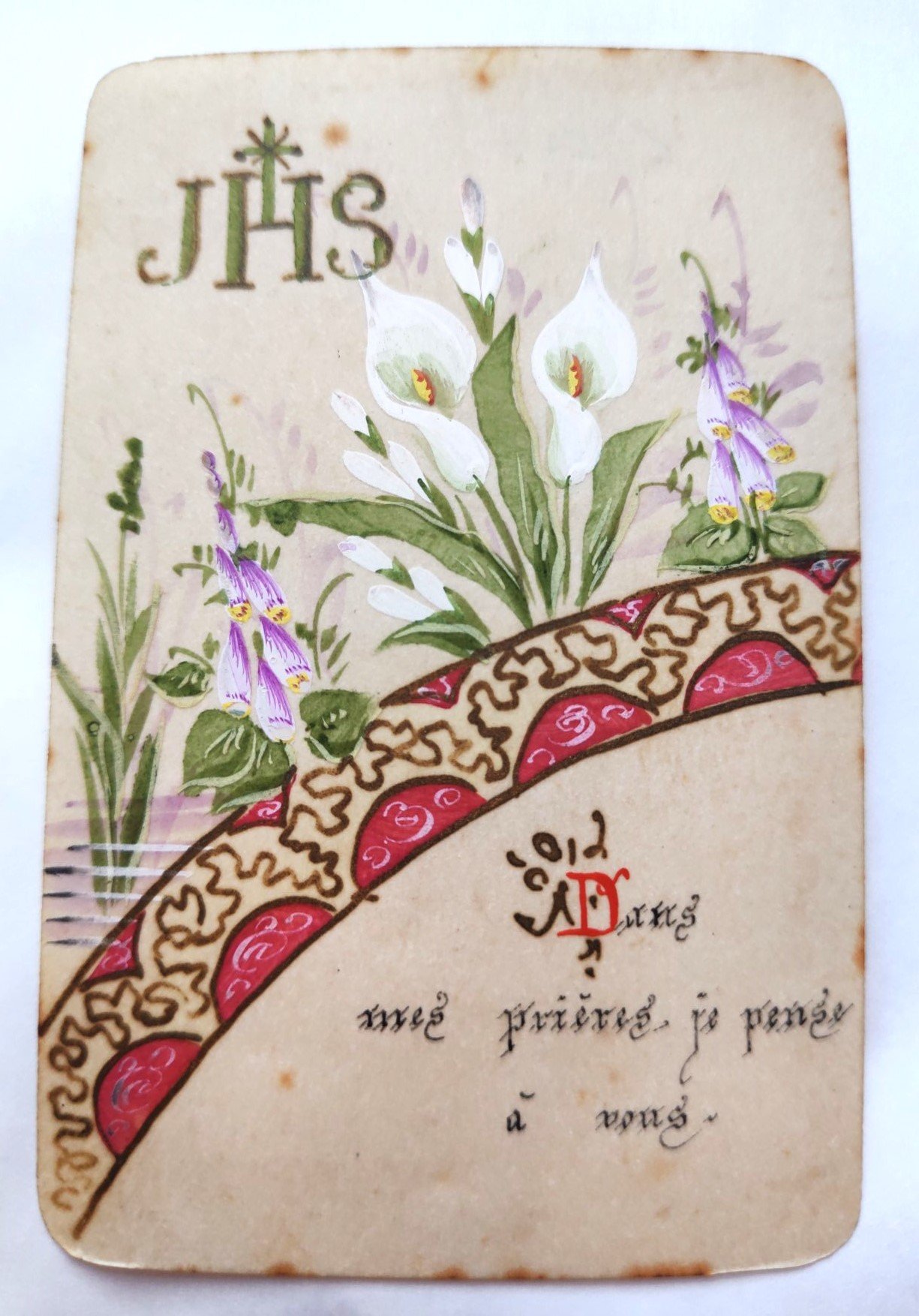 Santino manufatto Gesù dipinto a mano su carta pergamena holy card