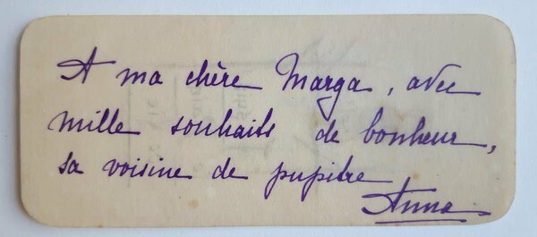 su carta in discreto stato una lieve piega all'angolo inferiore destro, immagine applicata sul retro dedica cm. 10 x 3,9
