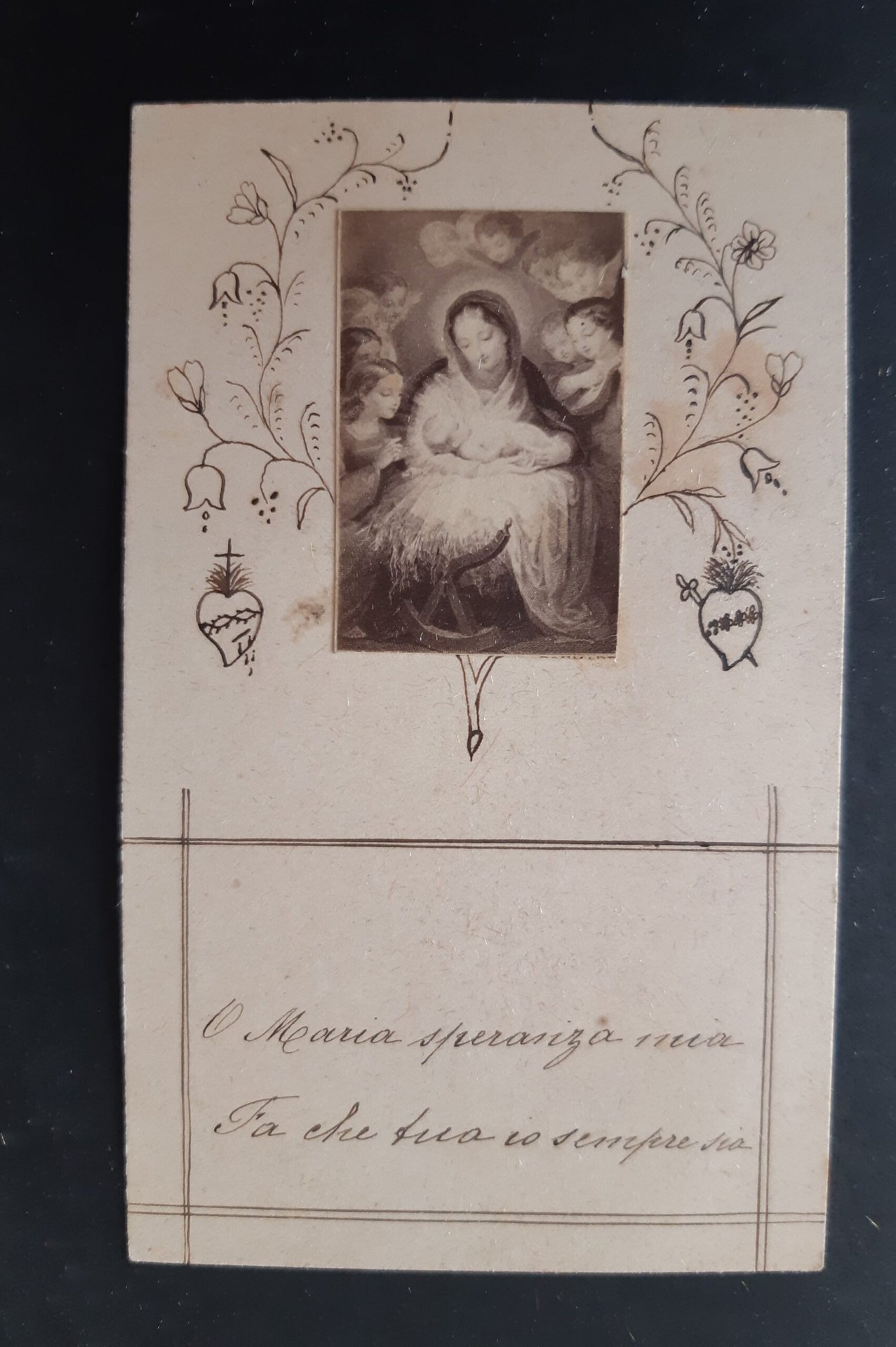 Santino manufatto Vergine Maria e Gesù bambino holy card