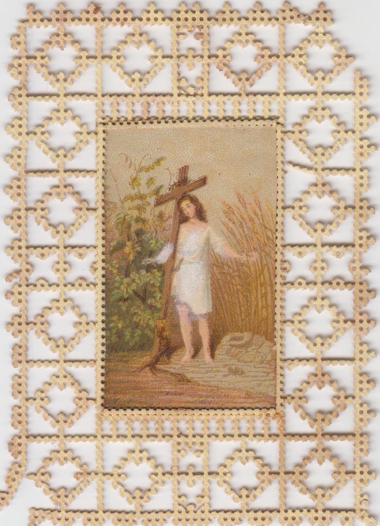 Santino merlettato manufatto canivet Gesù e la croce holy card 1890 c.a.