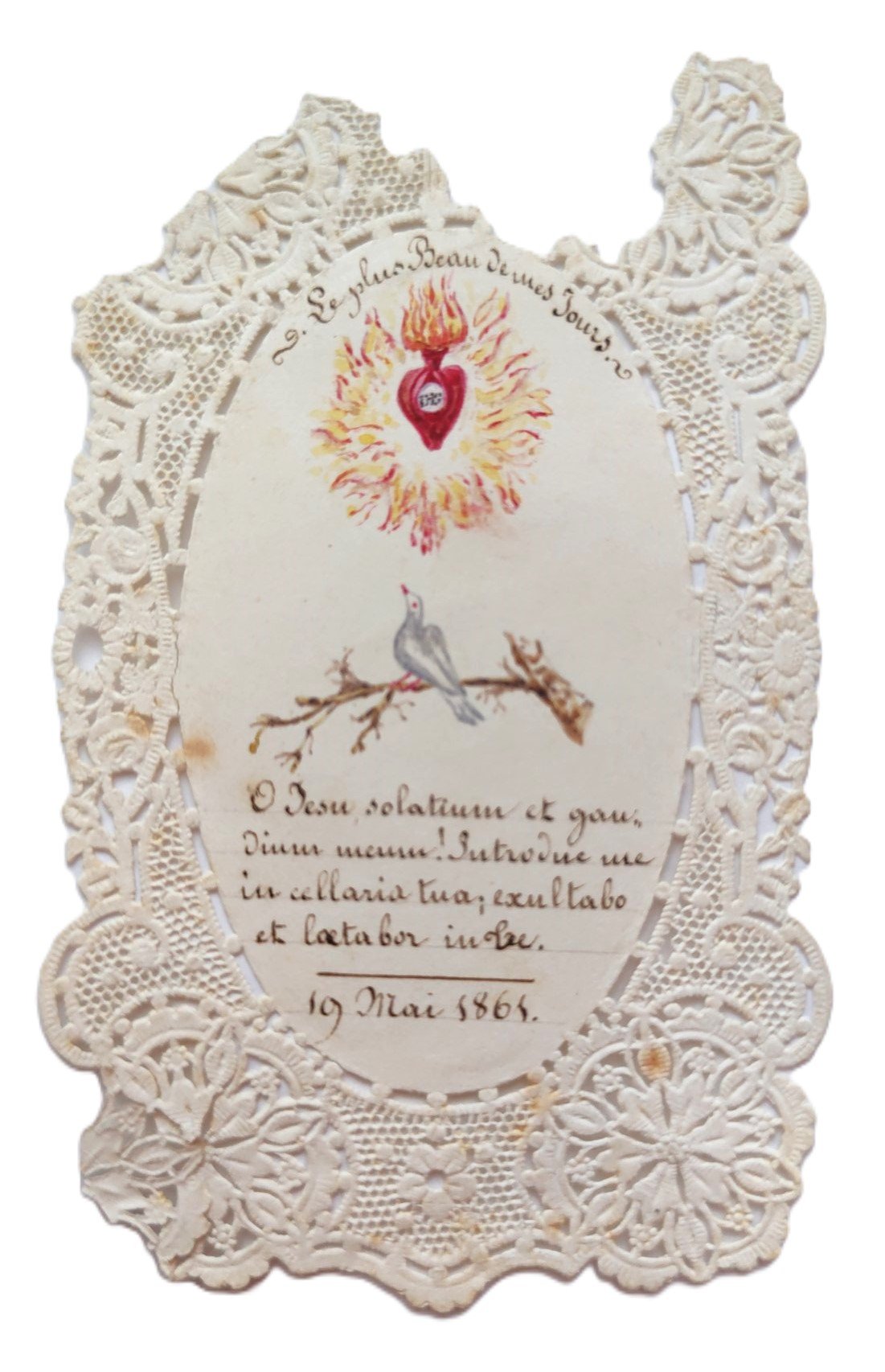 Santino merlettato manufatto canivet Sacro cuore di Gesù 1864