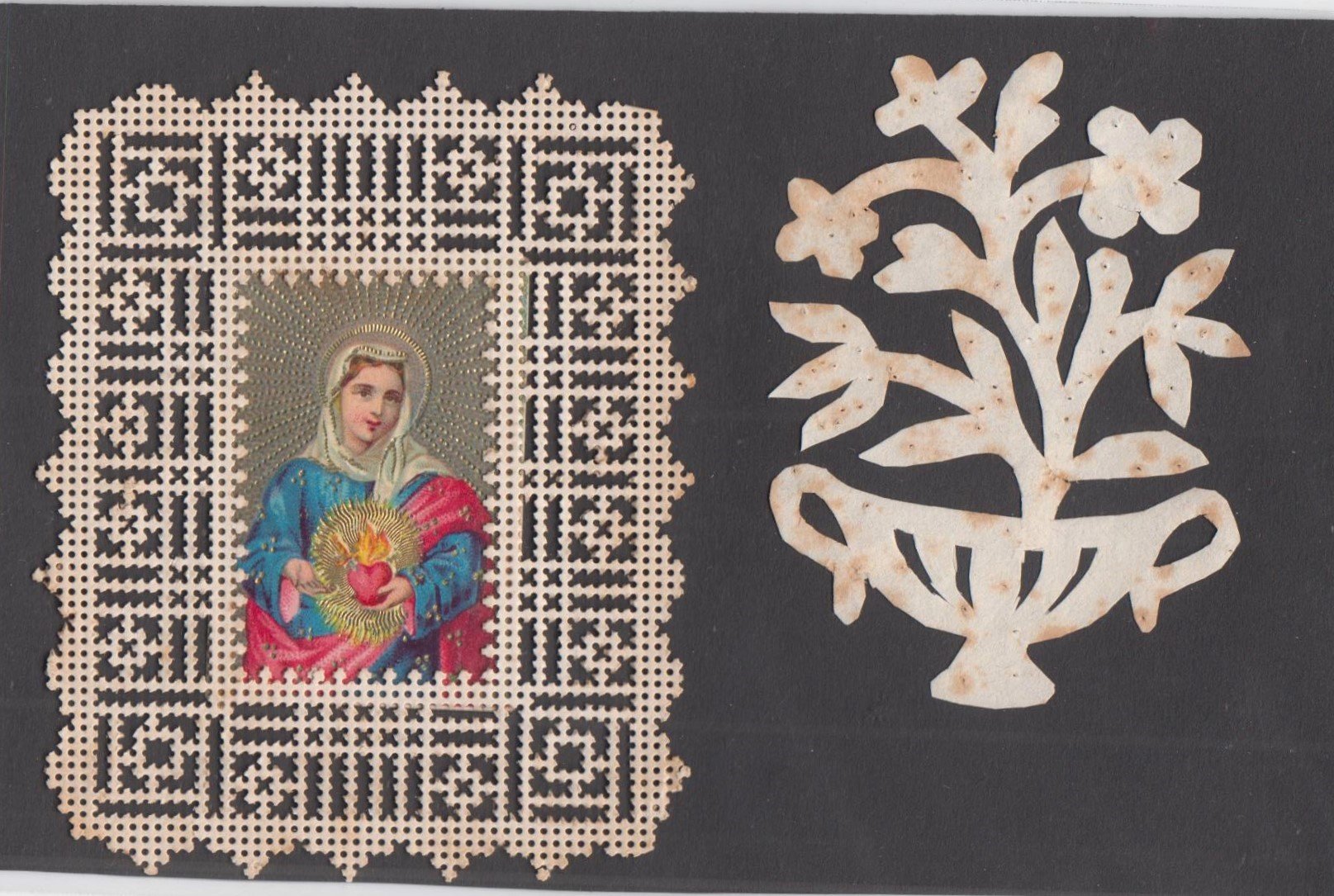Santino merlettato Sacro cuore di Geù e Vergine Maria con immagine puntinata