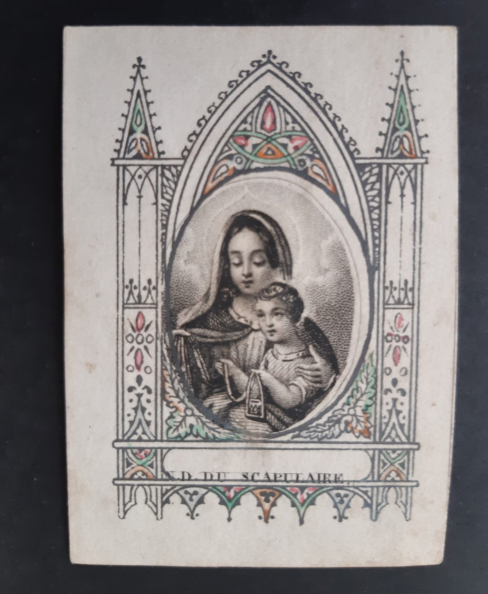 Santino scapolare Madonna con Geù bambino con in mano uno scapolare holy card